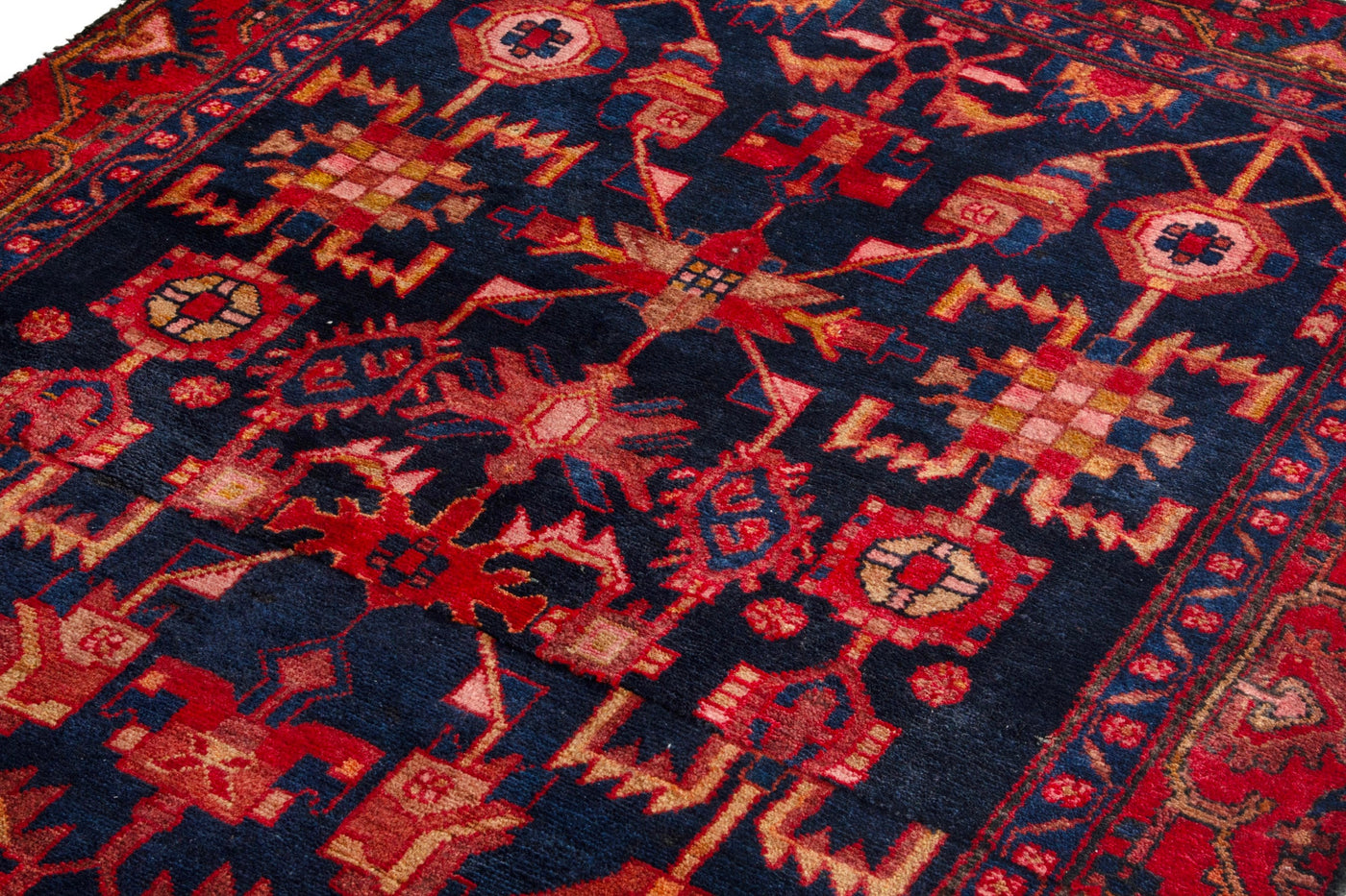 This one-of-a-kind, handmade vintage rug has been carefully restored, cleaned; age-related wear and natural imperfections are present.