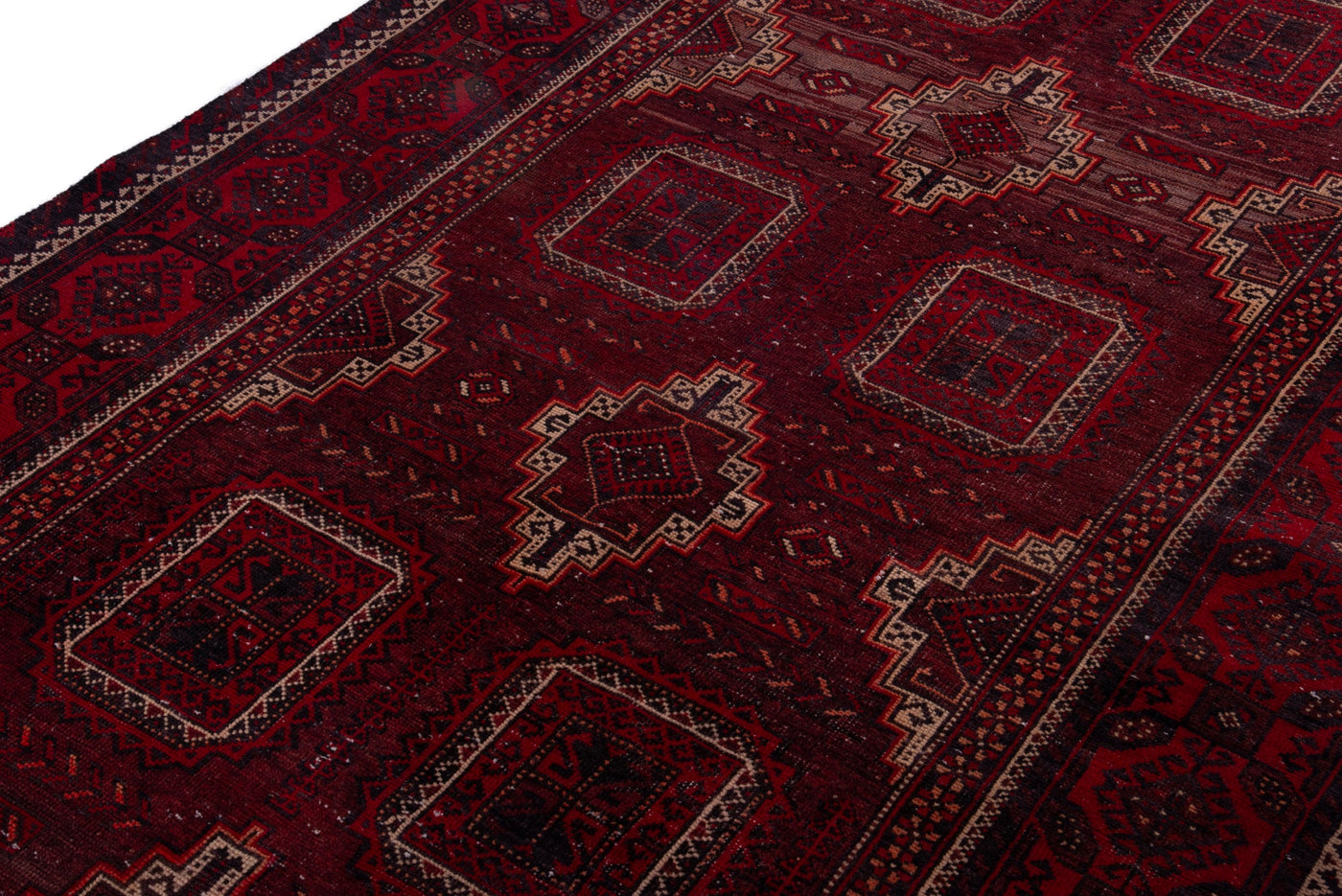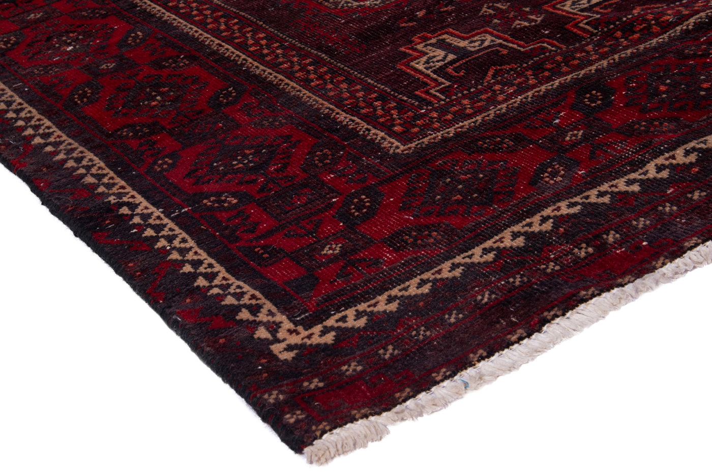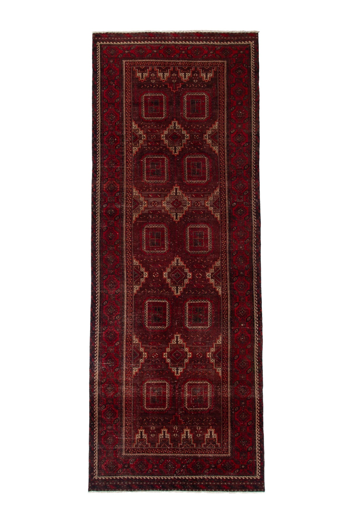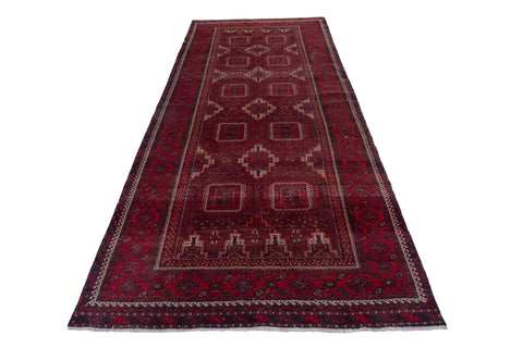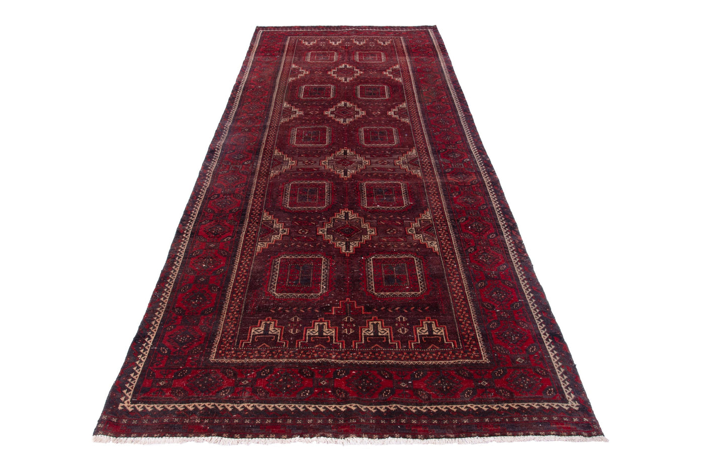 4'11" x 13'10" Geometric Vintage Red Runner Rug
