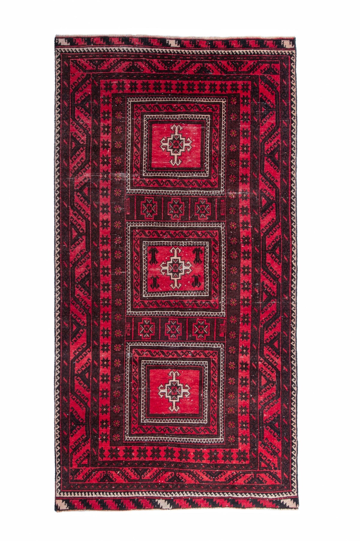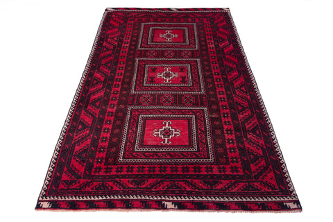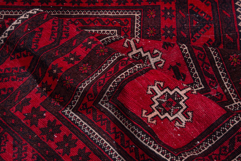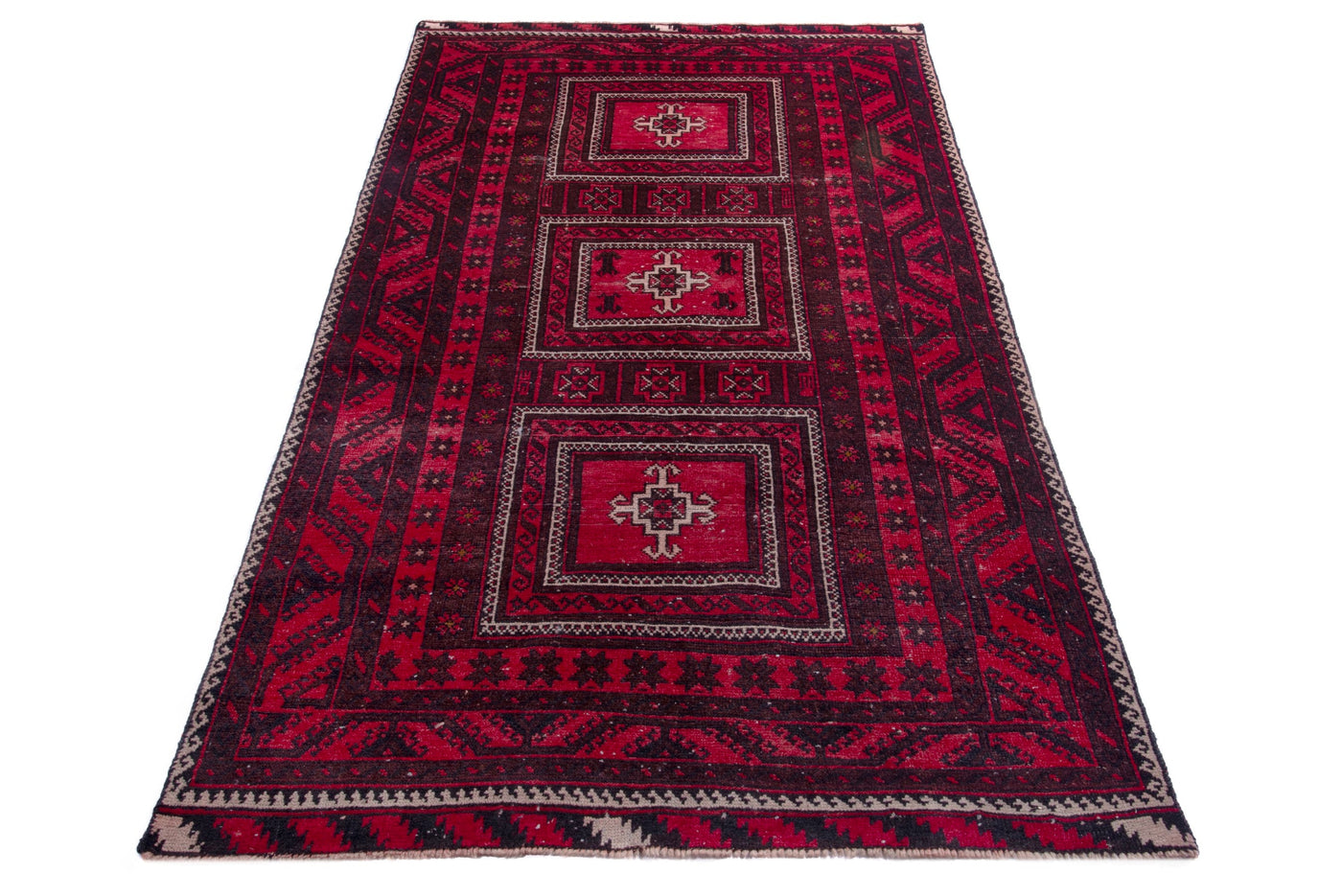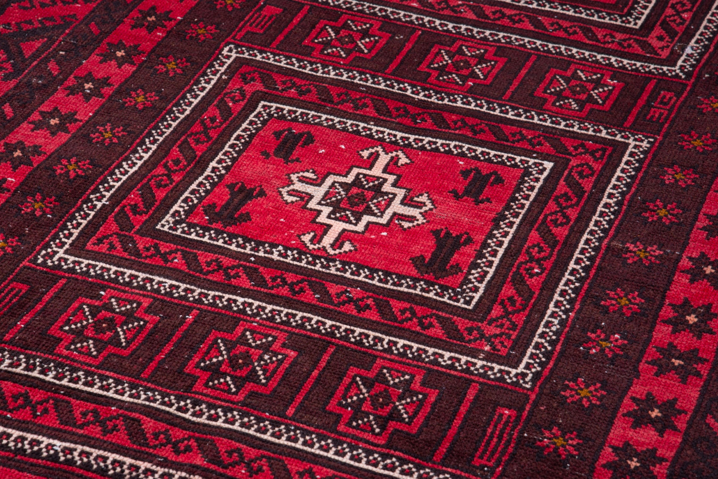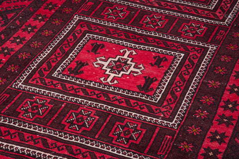 3'9" x 7'5" Vintage Turkish Geometric Red Rug
