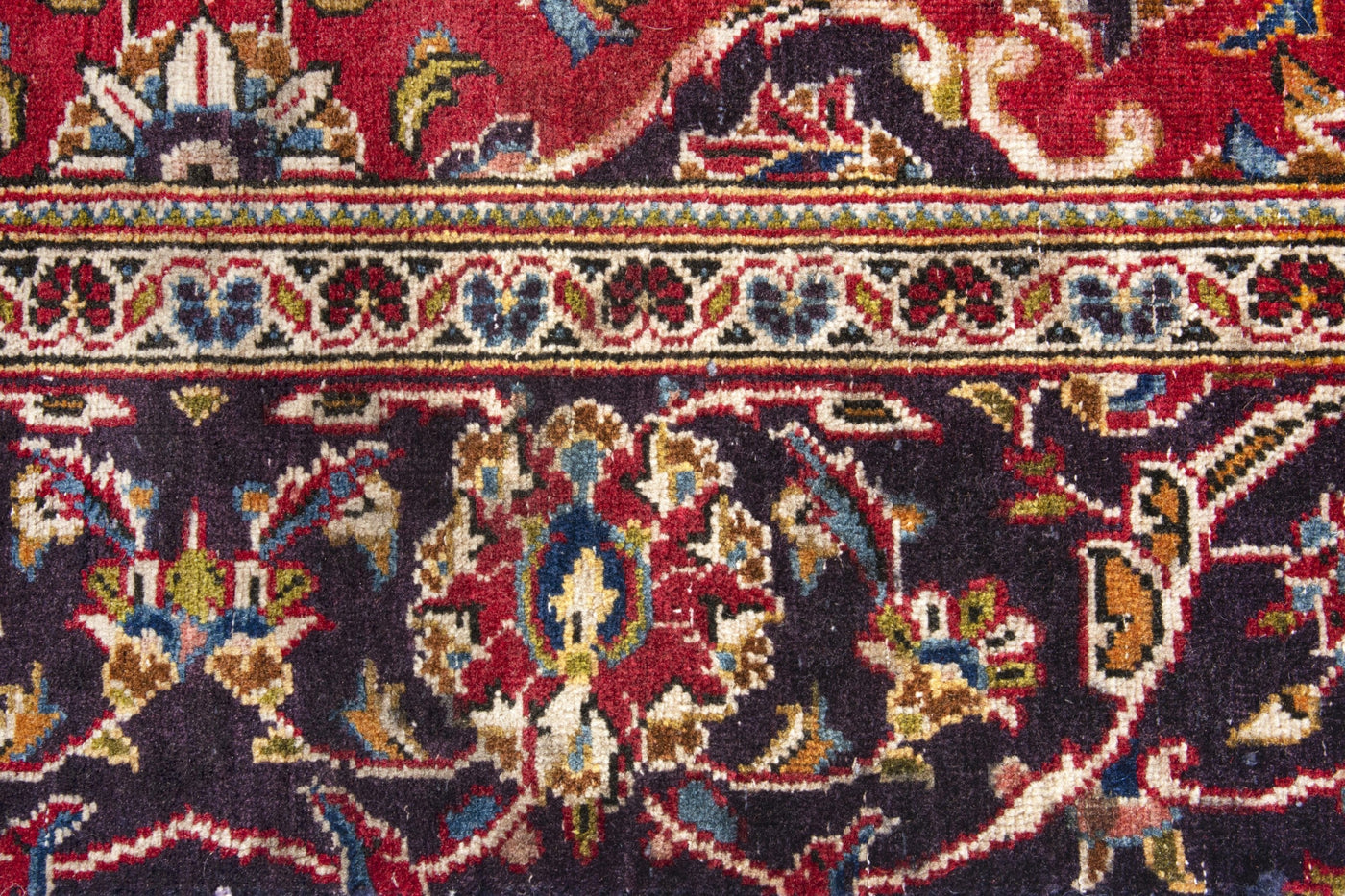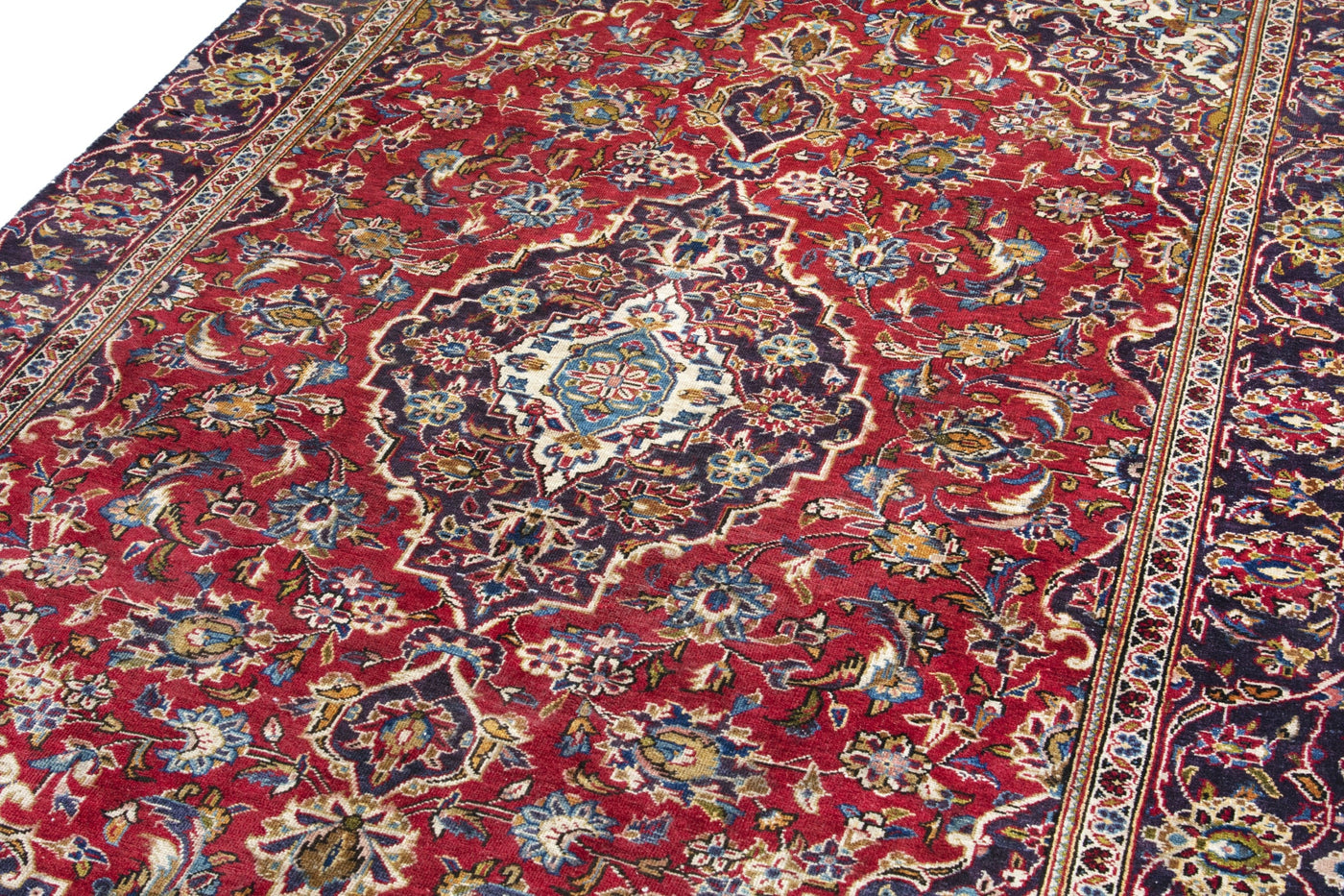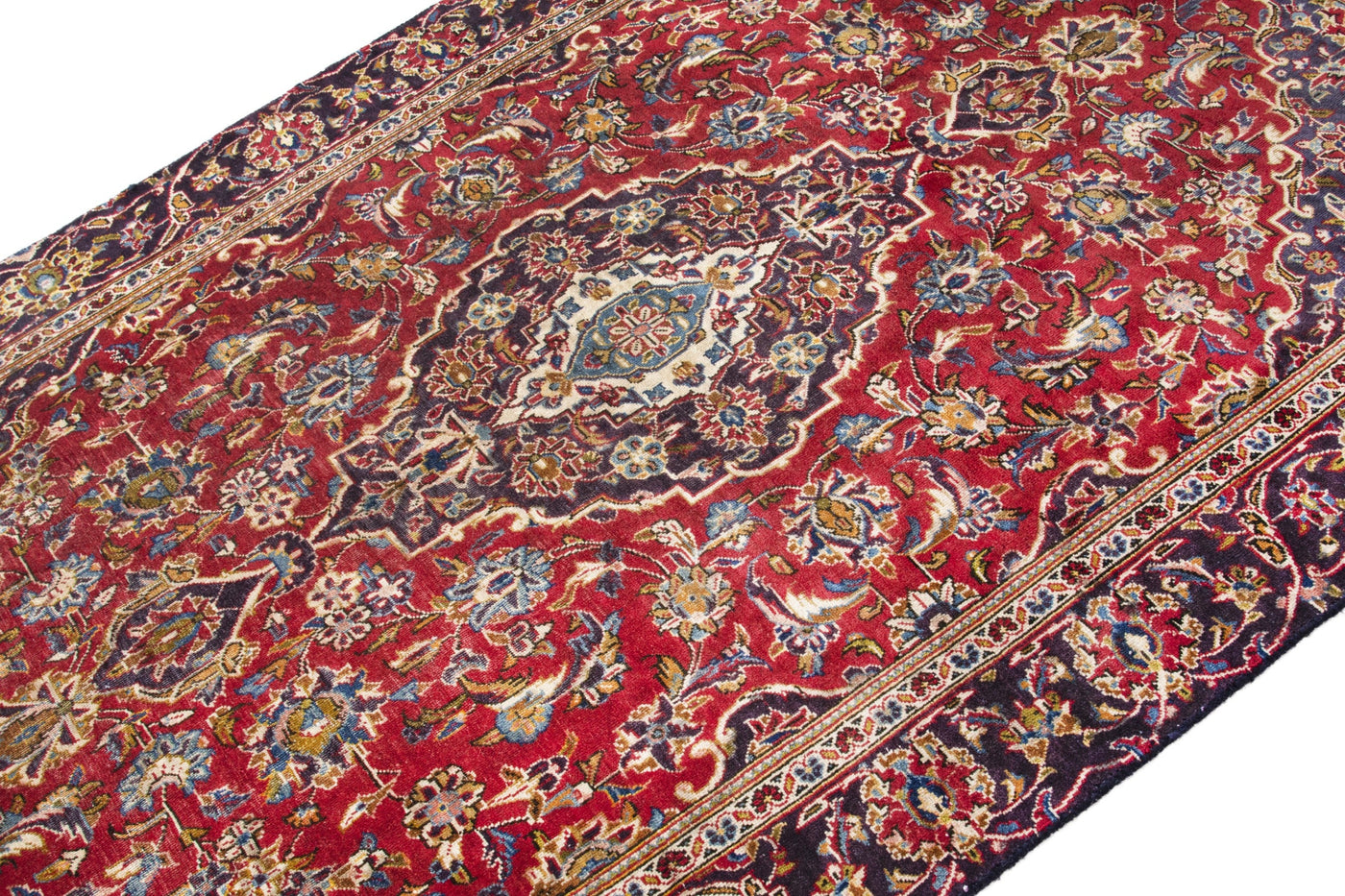 This one-of-a-kind, handmade vintage rug has been carefully restored, cleaned; age-related wear and natural imperfections are present.