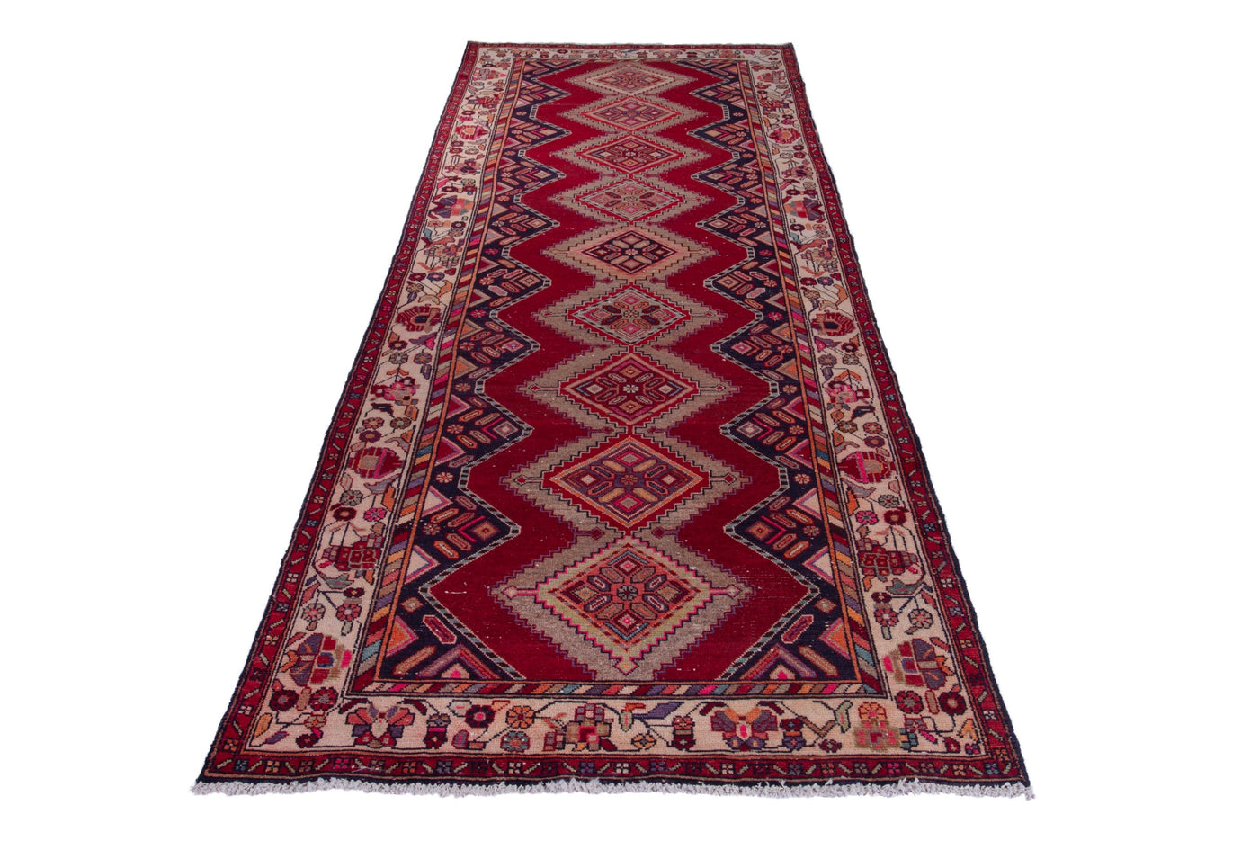3'10" x 10'10" Handmade Hallway Kitchen Red Runner Rug Sale