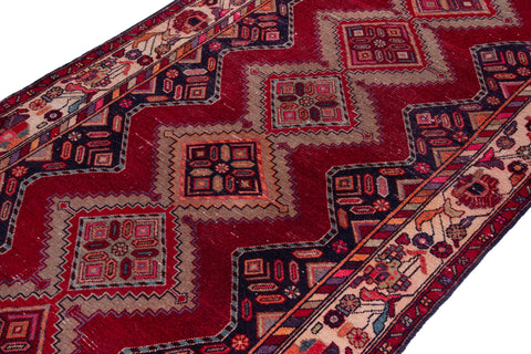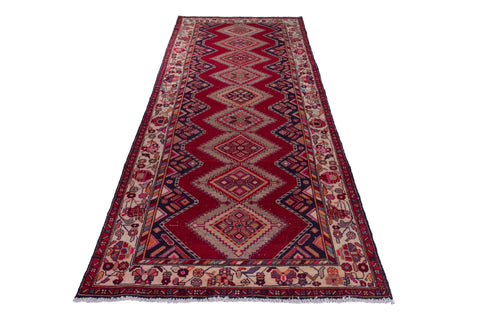 3'10" x 10'10" Handmade Hallway Kitchen Red Runner Rug