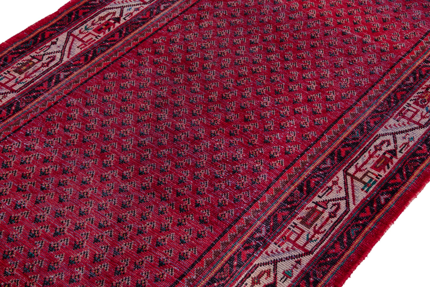 This one-of-a-kind, handmade vintage rug has been carefully restored, cleaned; age-related wear and natural imperfections are present.