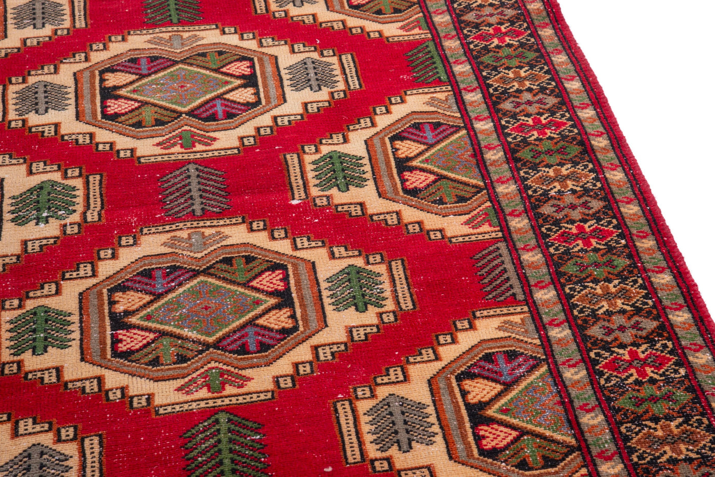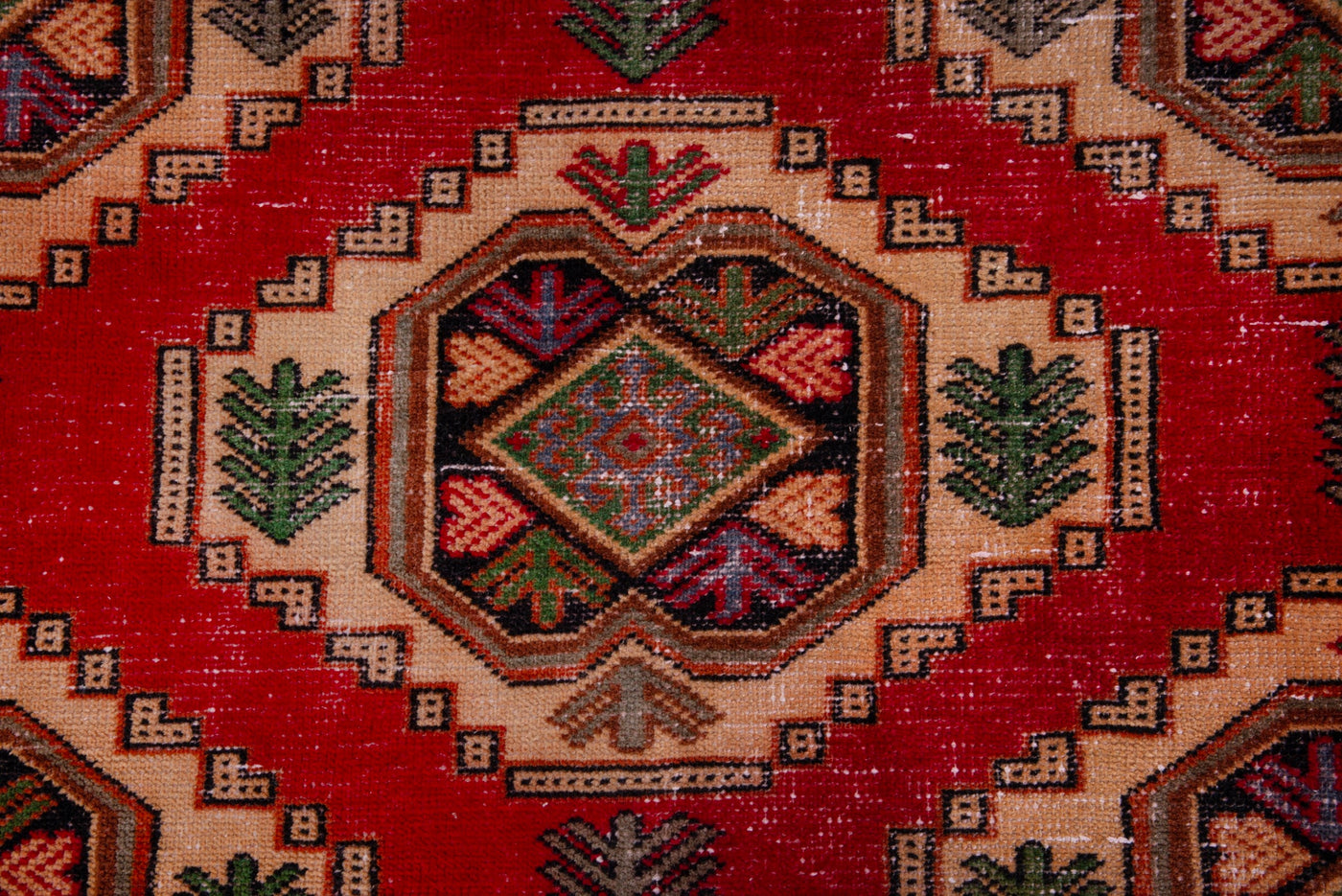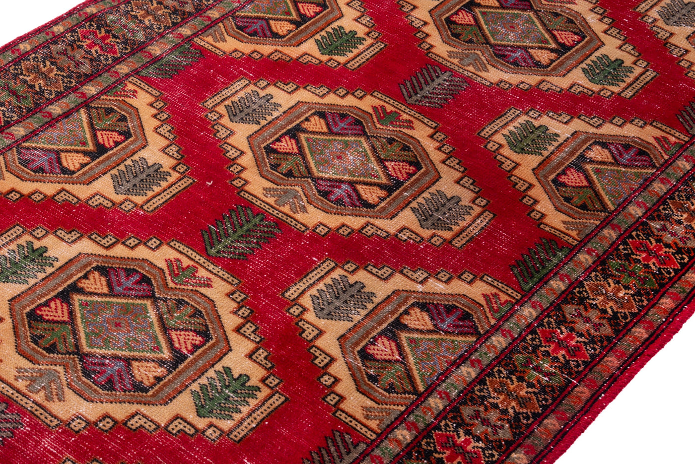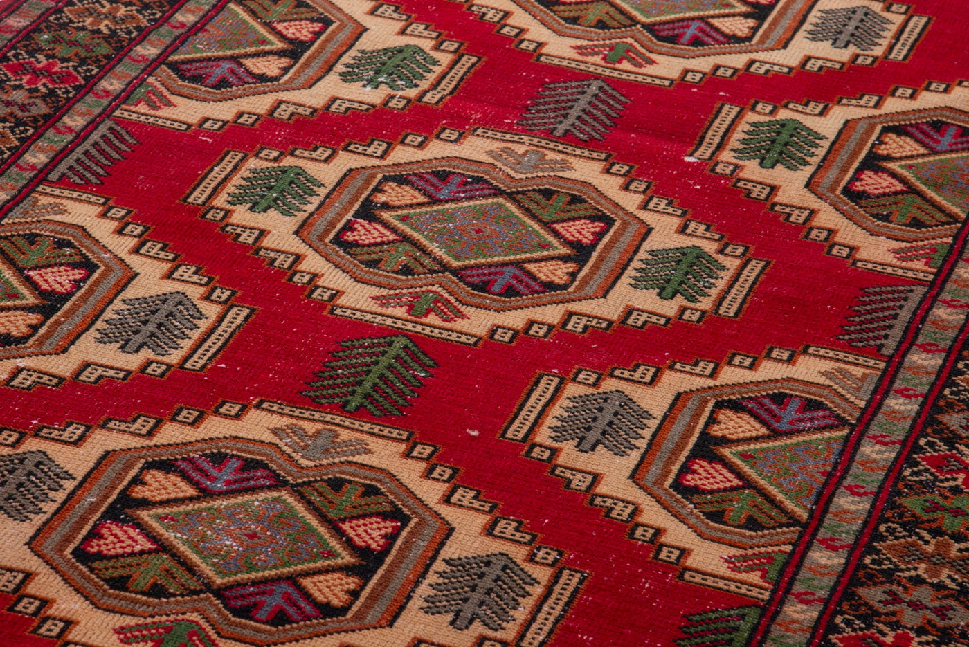 • Turkish vintage rugs were made 100% wool on cotton foundation by female artisans in Anatolian villages in the early and mid-20th Century.