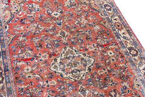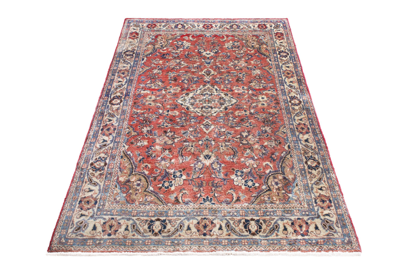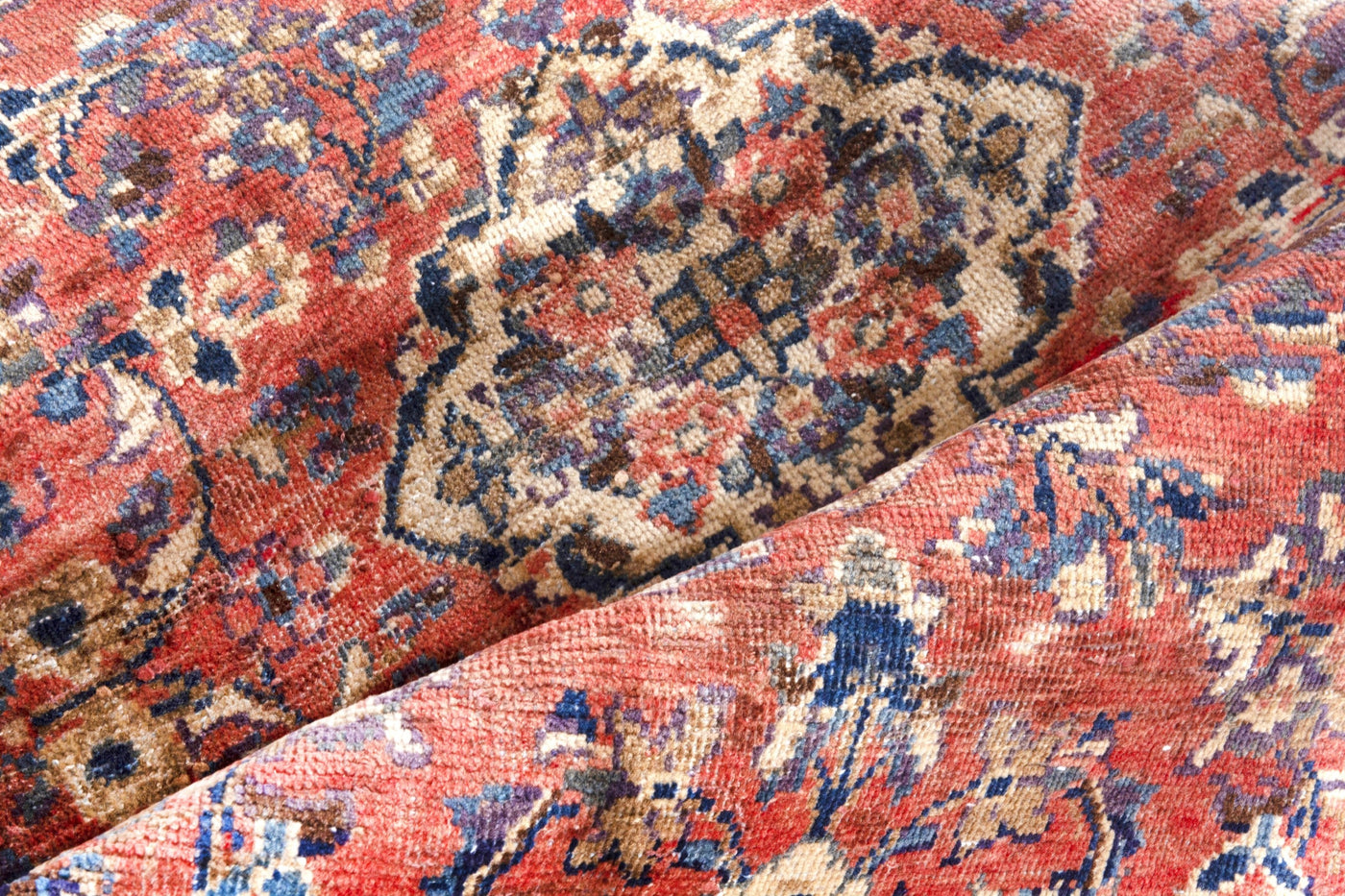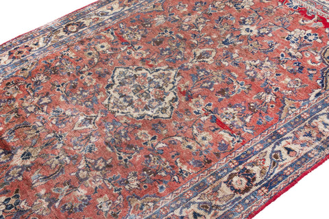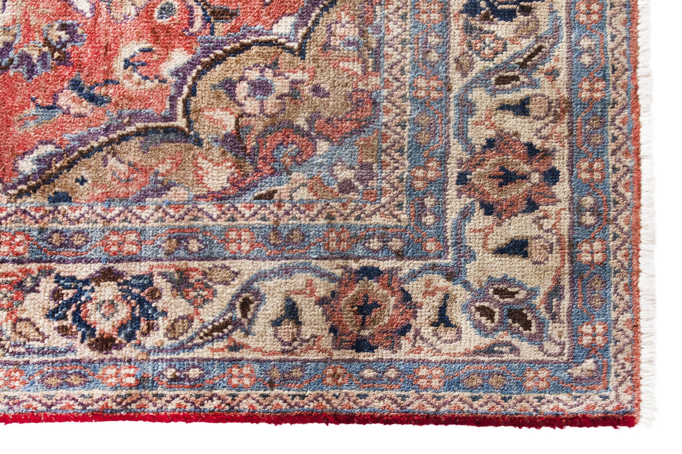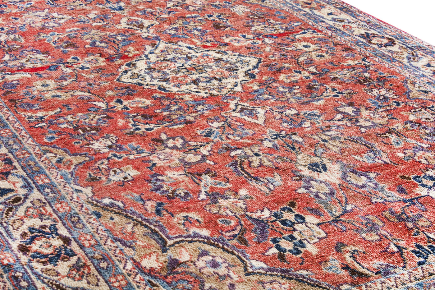 This one-of-a-kind, handmade vintage rug has been carefully restored, cleaned; age-related wear and natural imperfections are present.