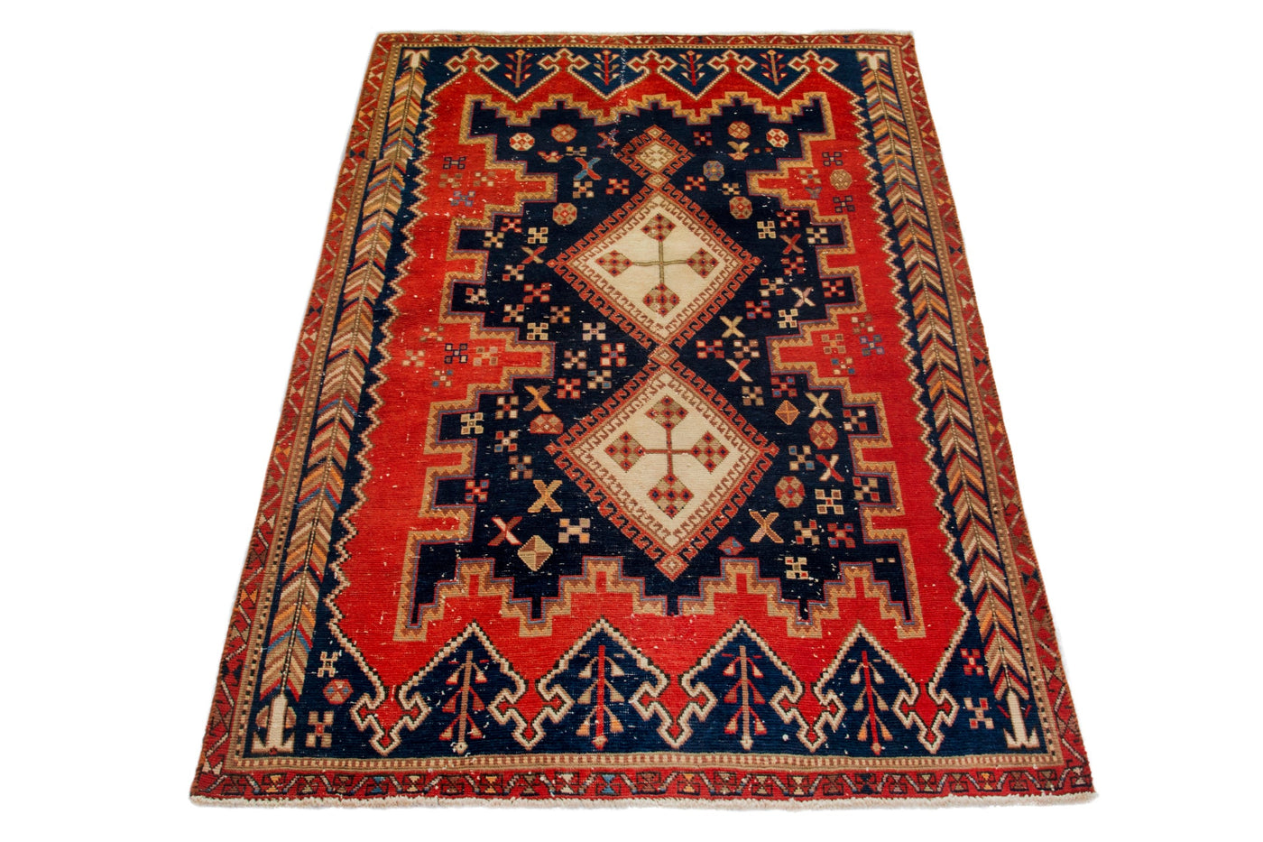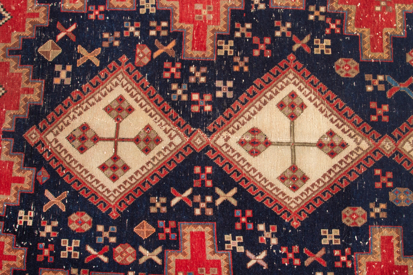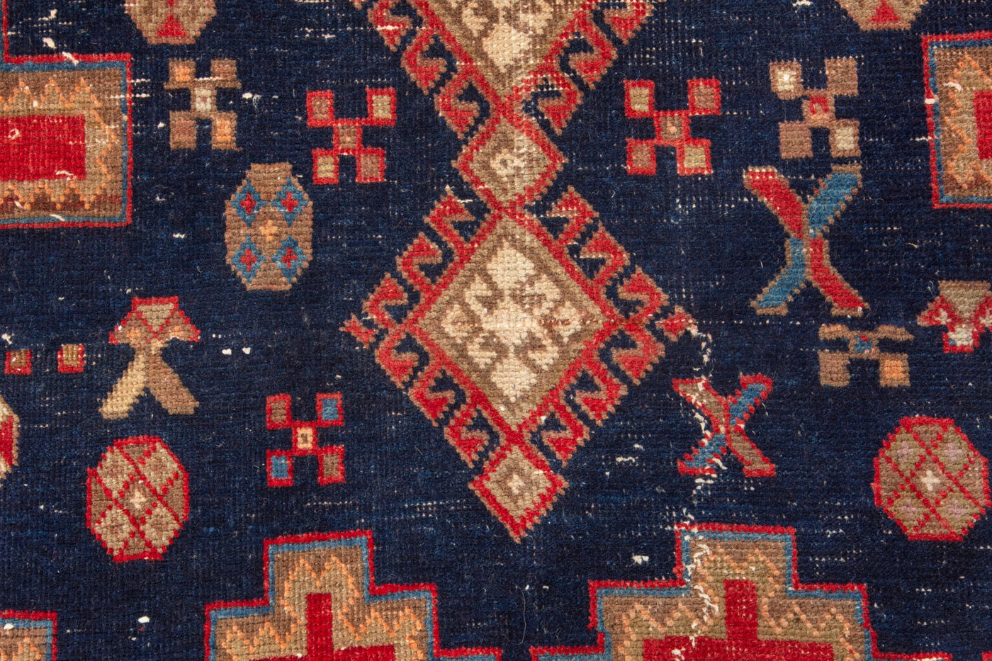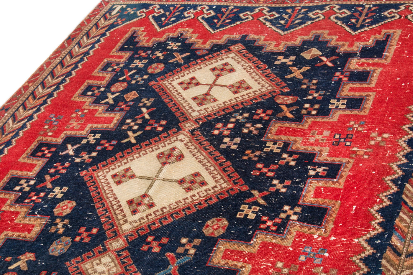 This one-of-a-kind, handmade vintage rug has been carefully restored, cleaned; age-related wear and natural imperfections are present.