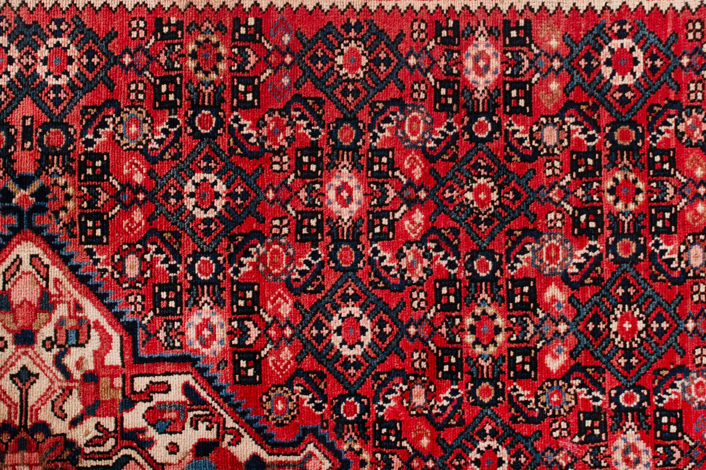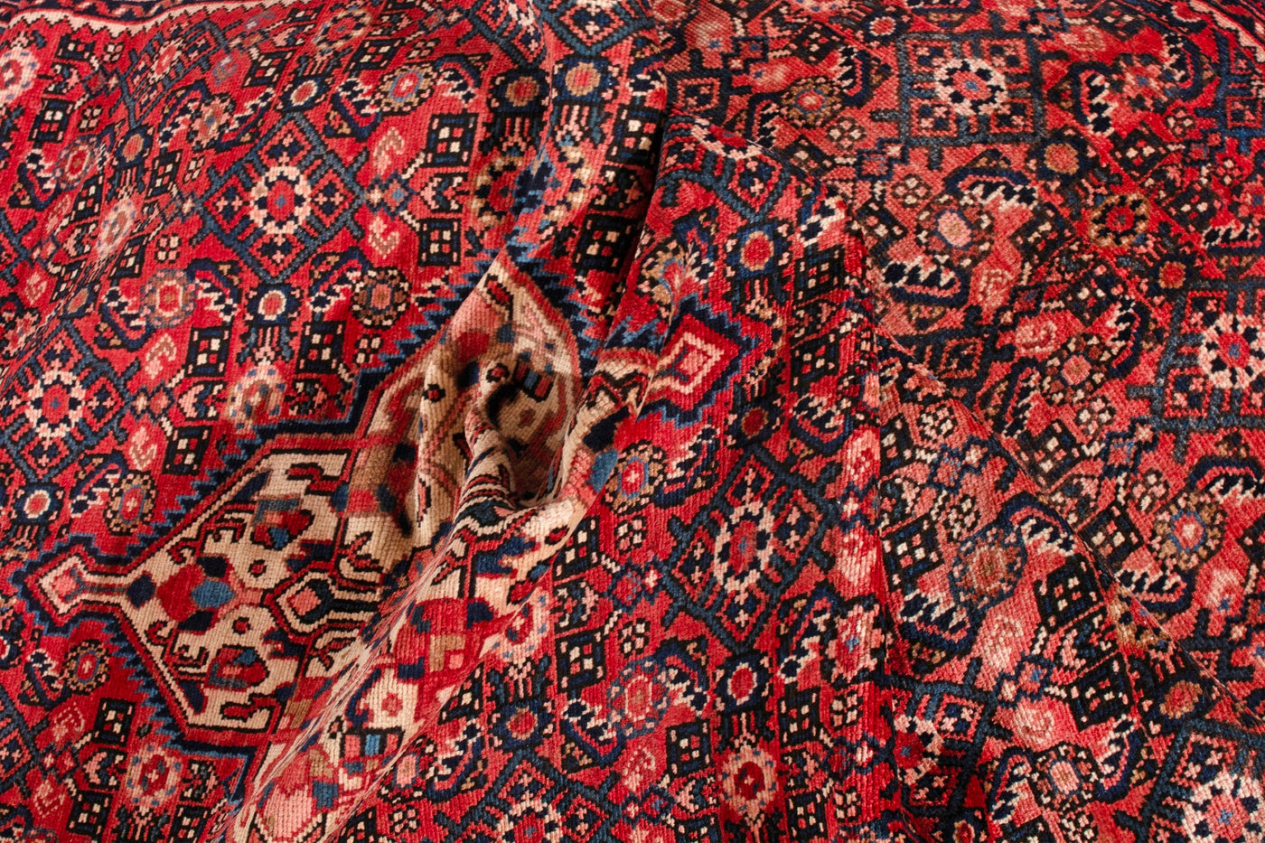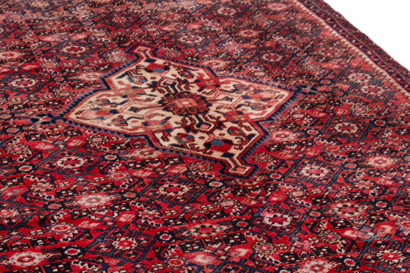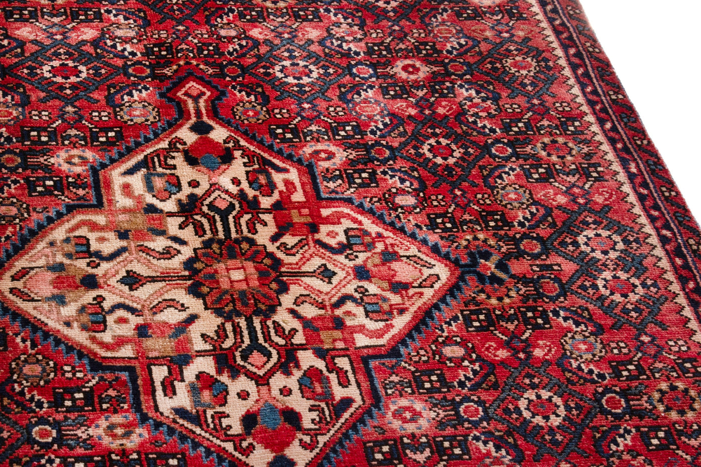 This one-of-a-kind, handmade vintage rug has been carefully restored, cleaned; age-related wear and natural imperfections are present.