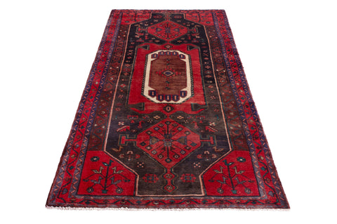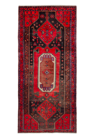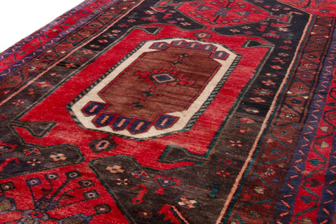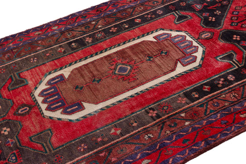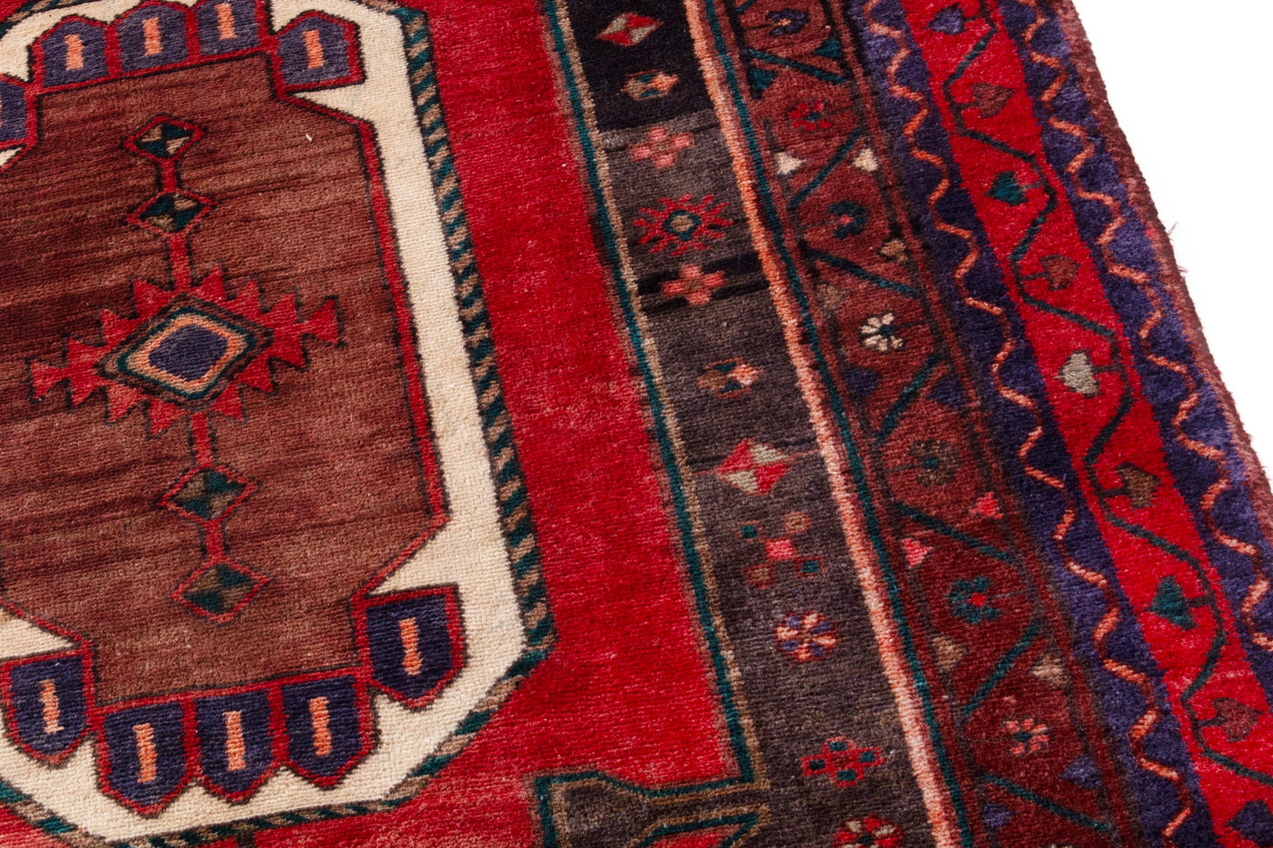 4'5" x 9'6" Handwoven Vintage Turkish Red Runner Rug