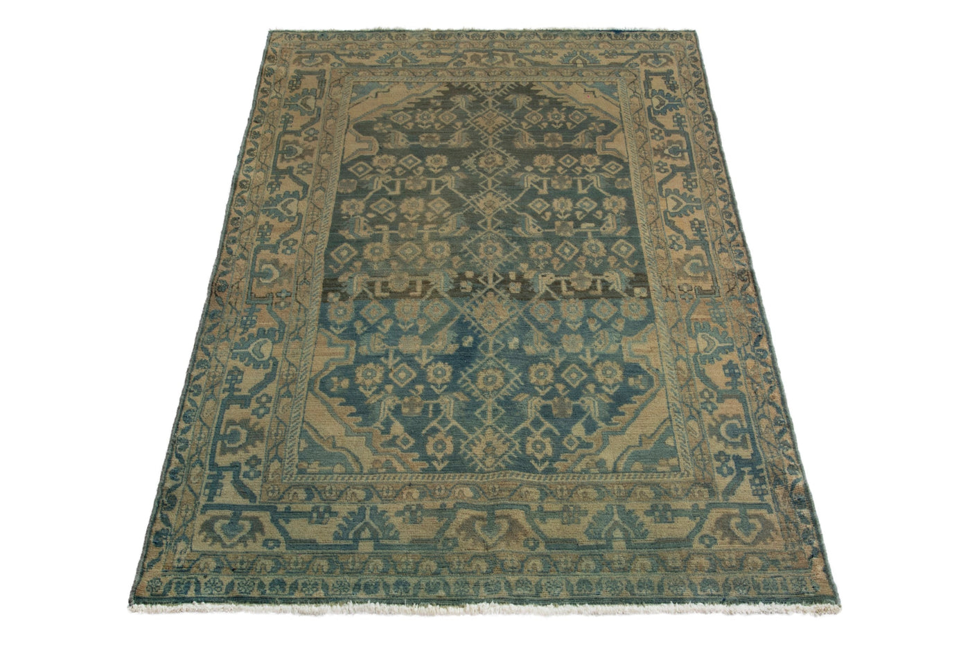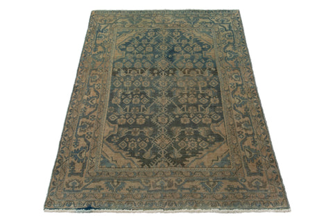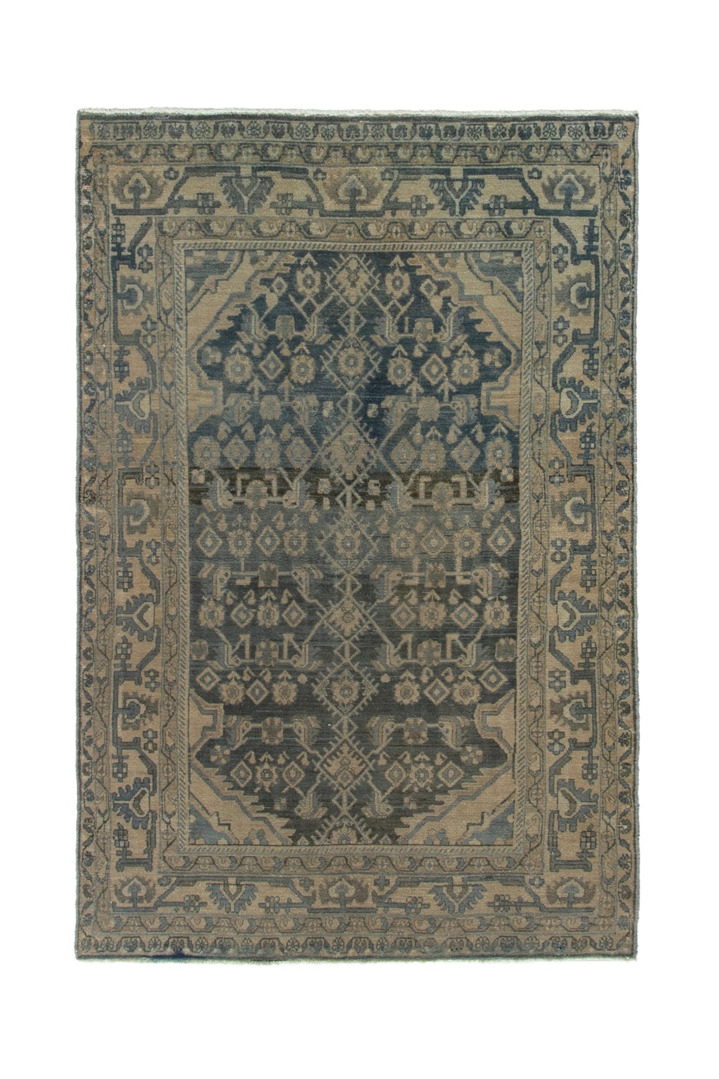 4'6" x 6'11" Handmade Vintage Neutral Blue Medium Rug