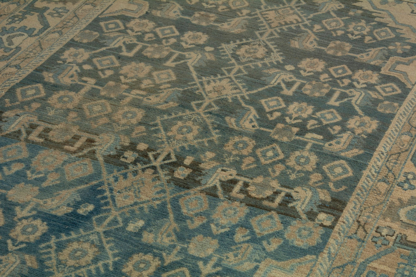 This one-of-a-kind, handmade vintage rug has been carefully restored, cleaned; age-related wear and natural imperfections are present.