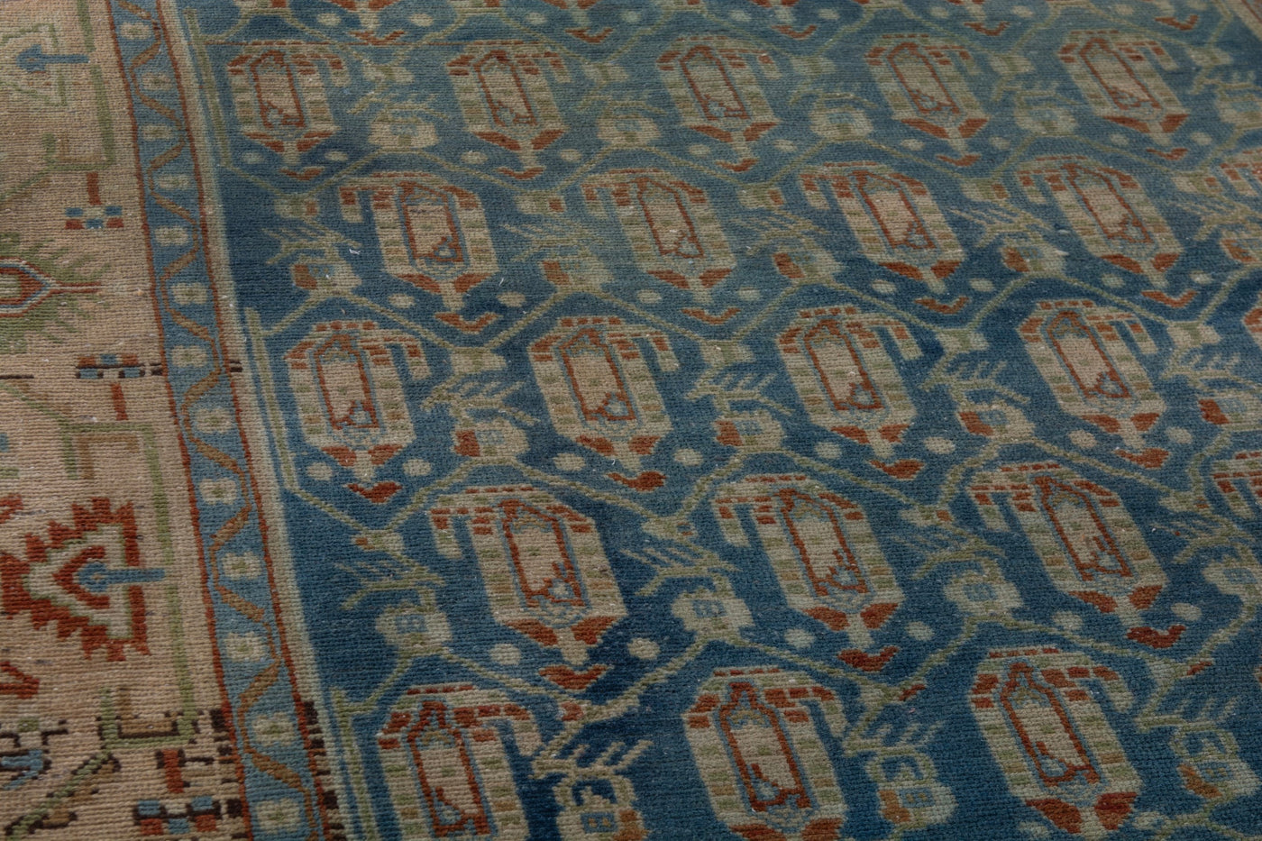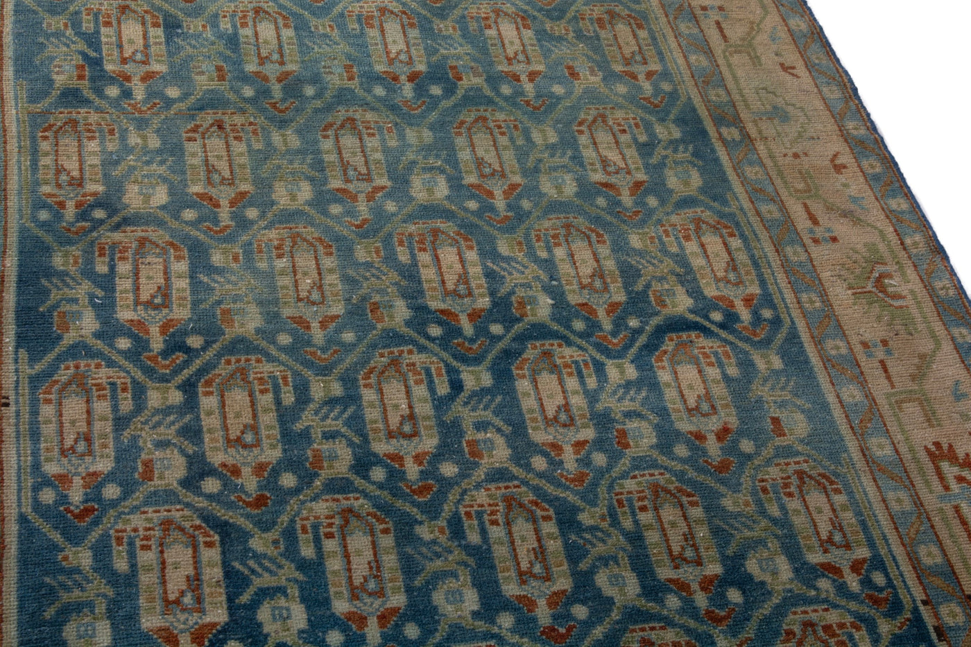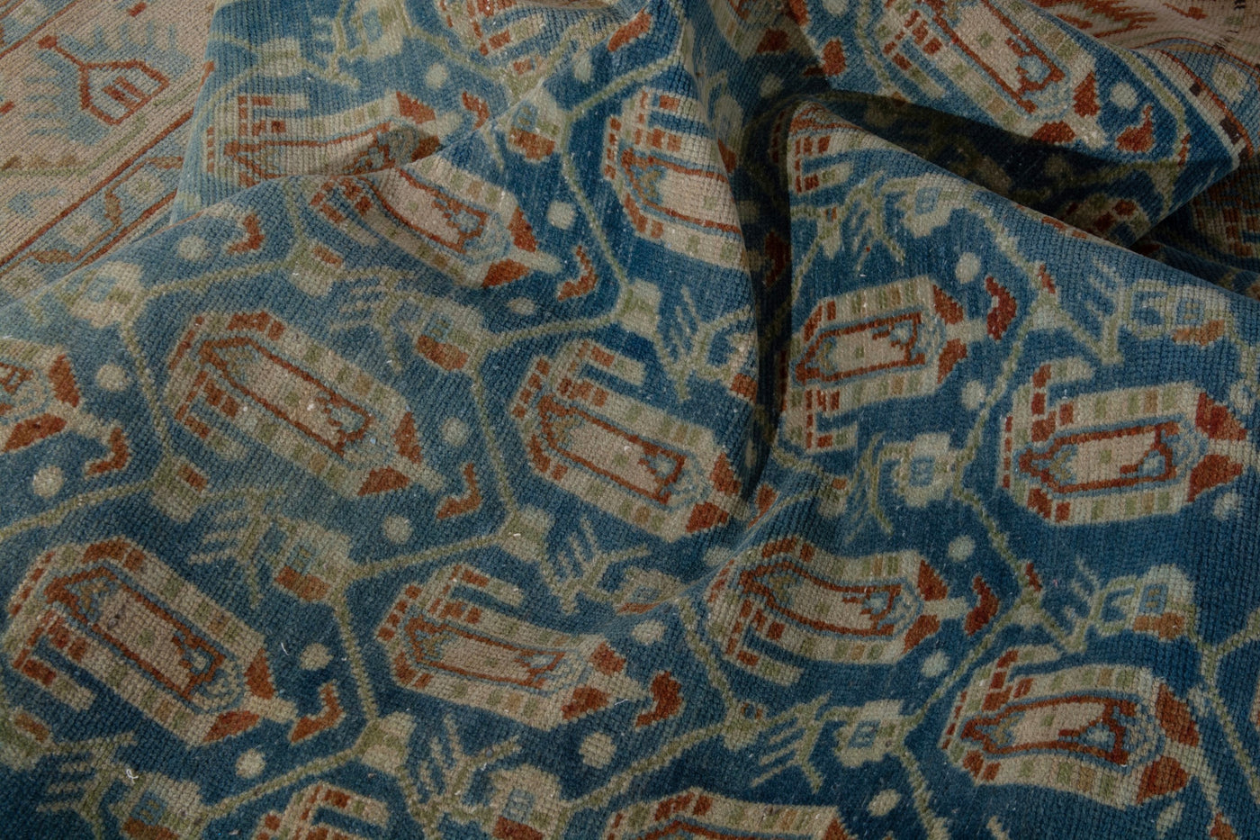 This one-of-a-kind, handmade vintage rug has been carefully restored, cleaned; age-related wear and natural imperfections are present.
