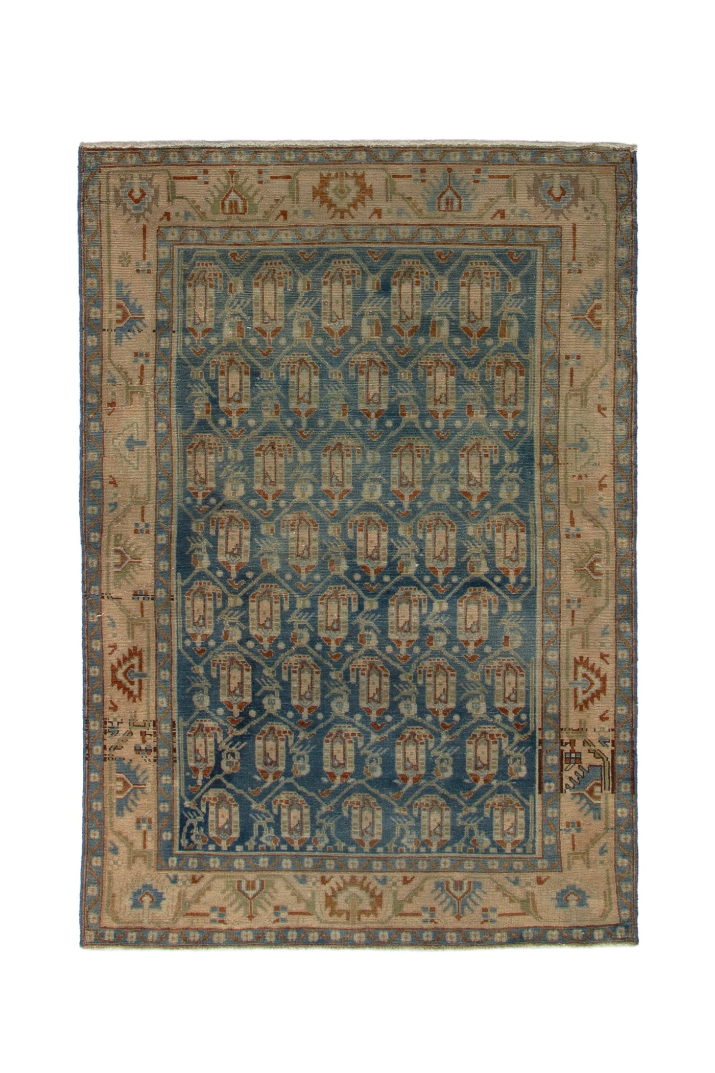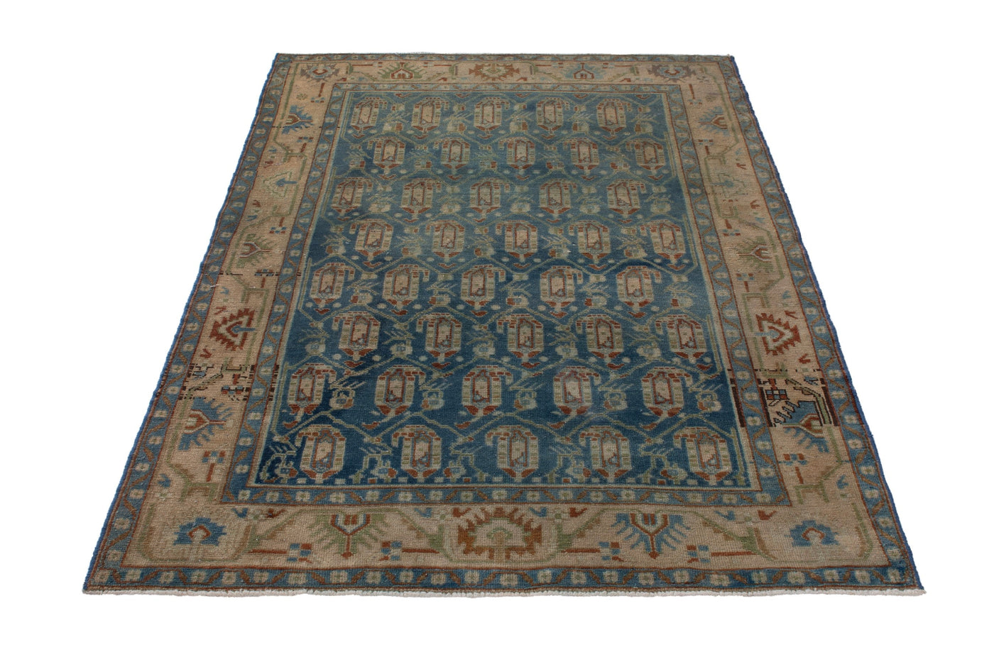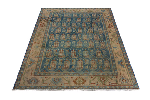 4'6" x 6'11" Vintage Turkish Neutral Blue Medium Rug