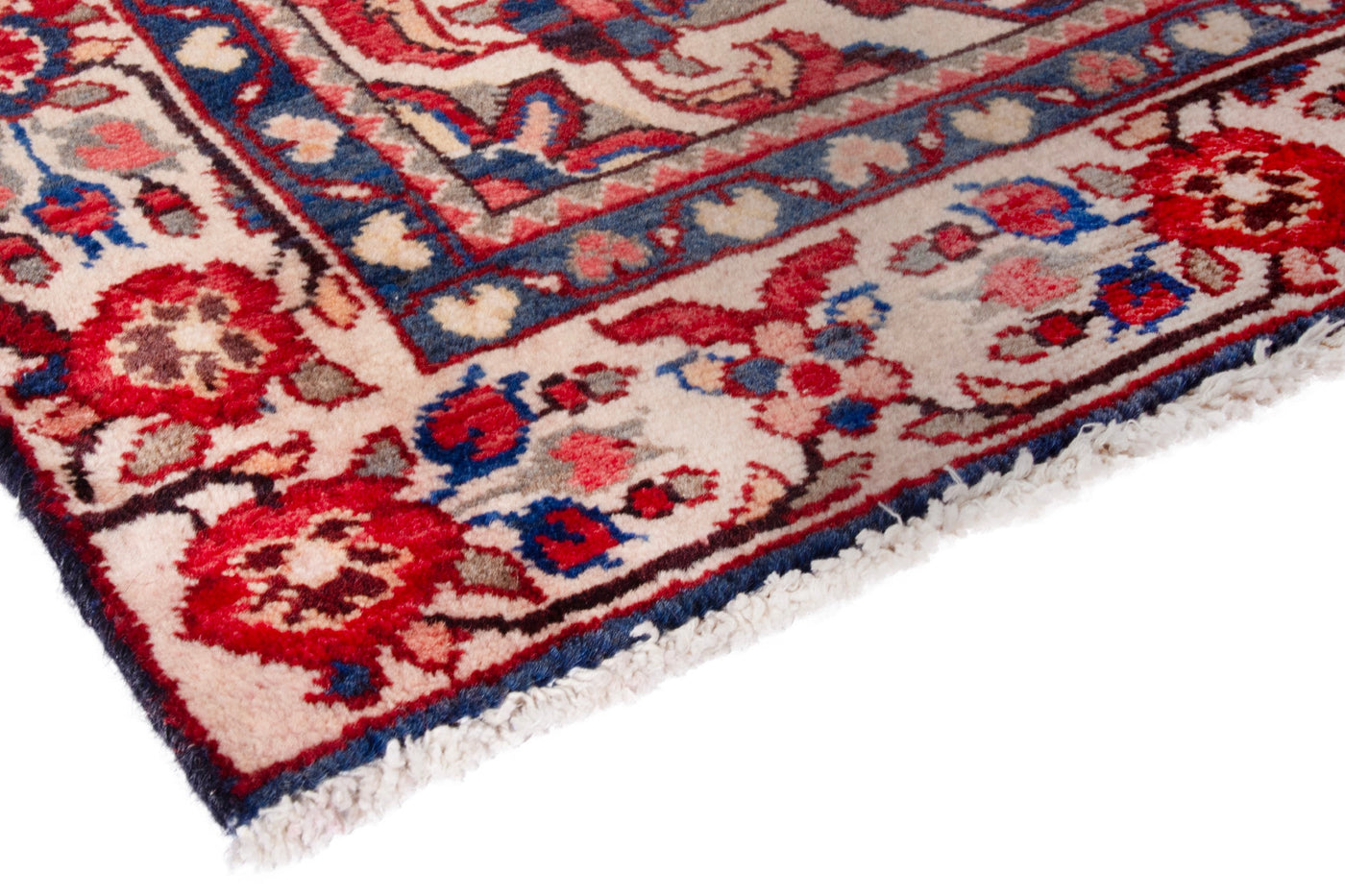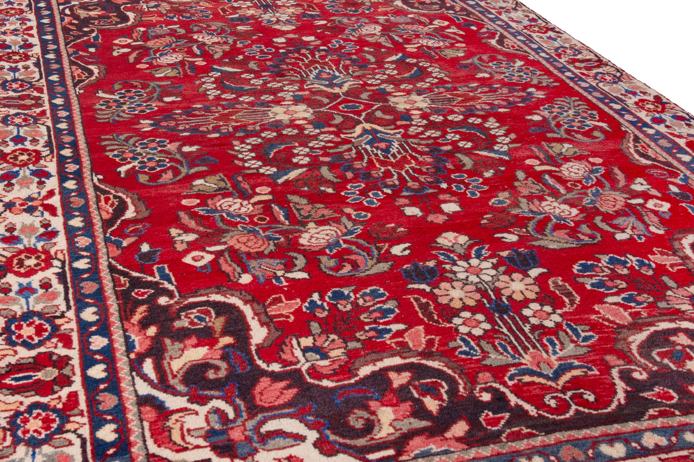 This one-of-a-kind, handmade vintage rug has been carefully restored, cleaned; age-related wear and natural imperfections are present.