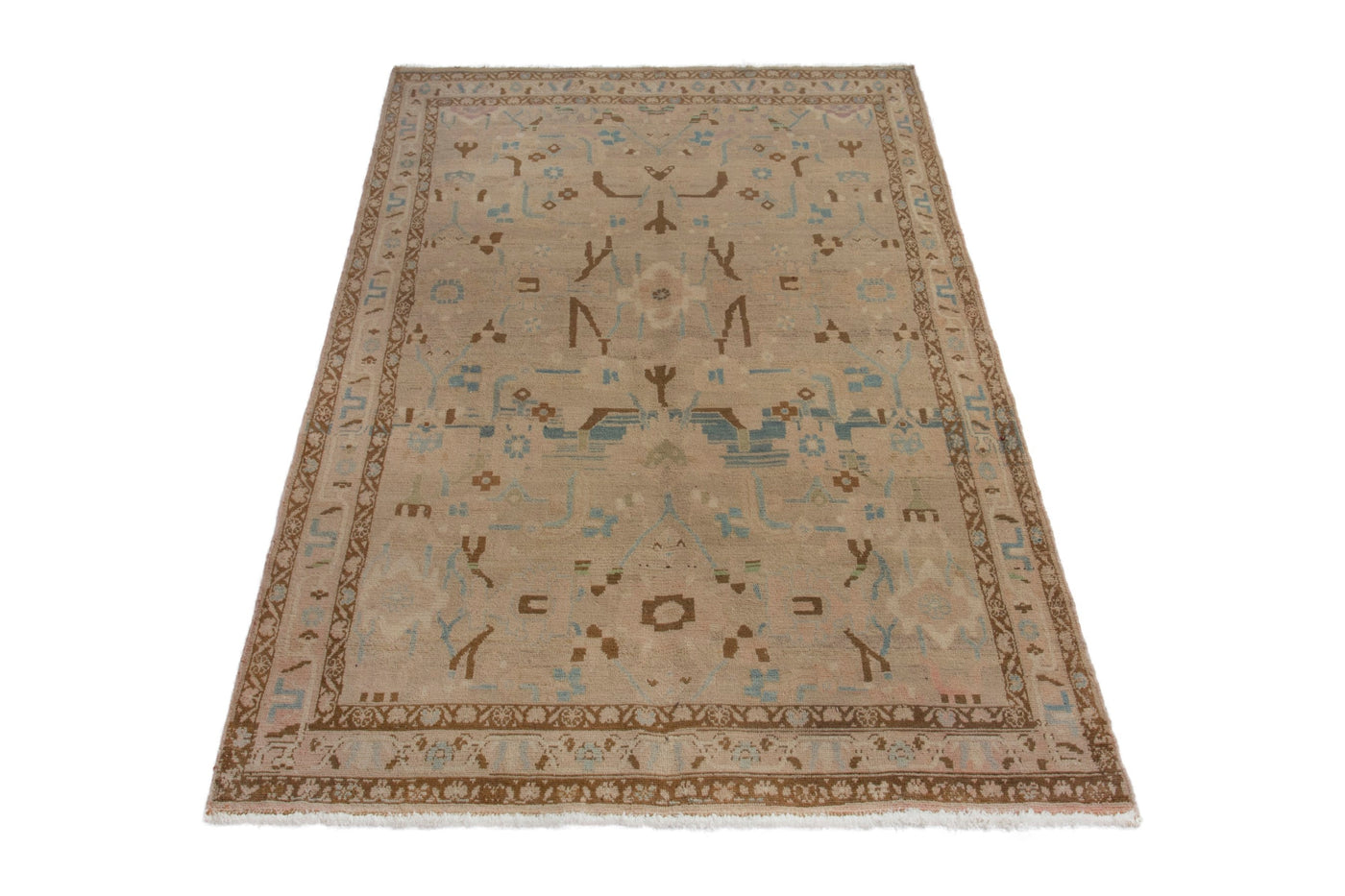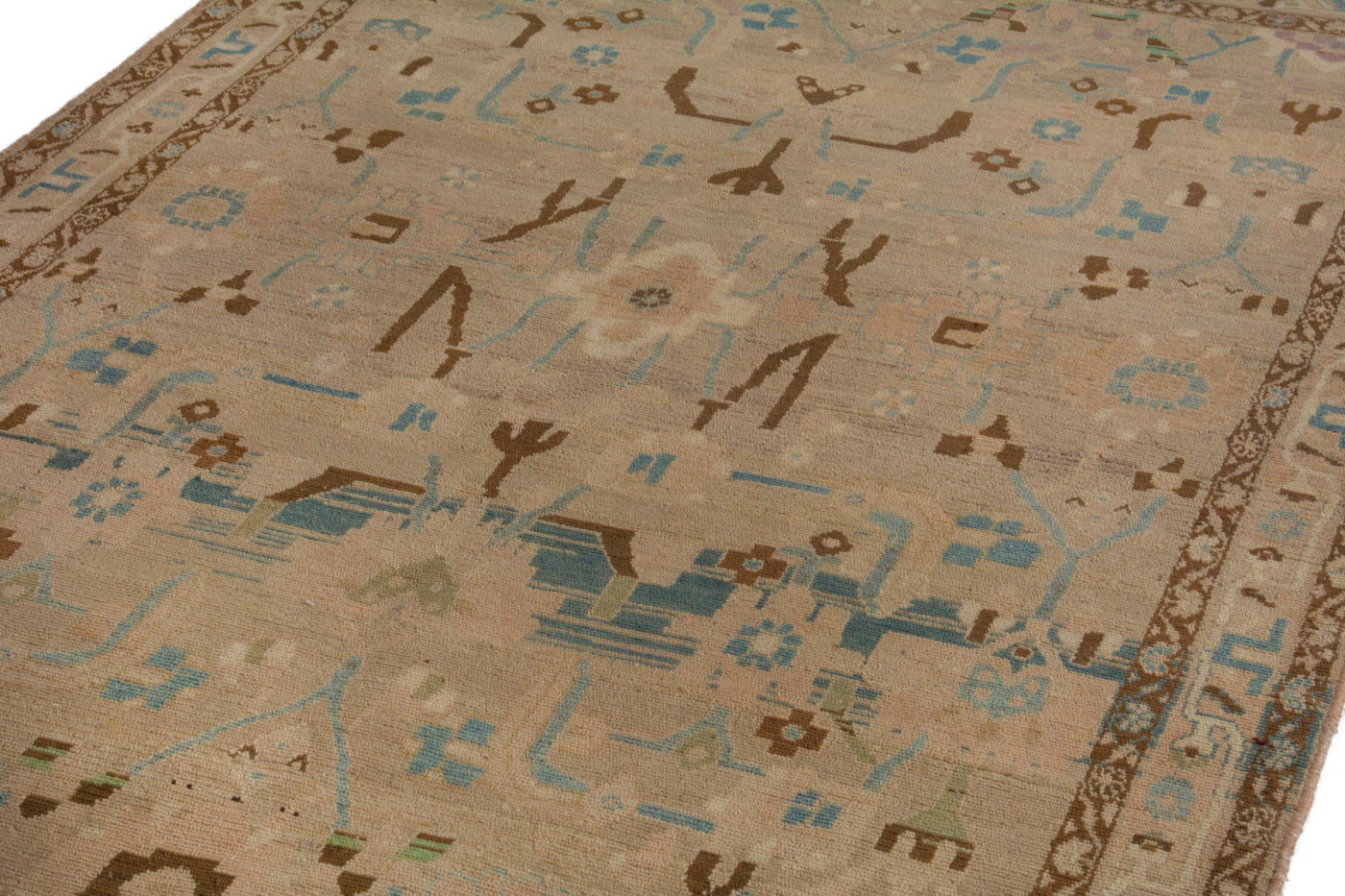 This one-of-a-kind, handmade vintage rug has been carefully restored, cleaned; age-related wear and natural imperfections are present.