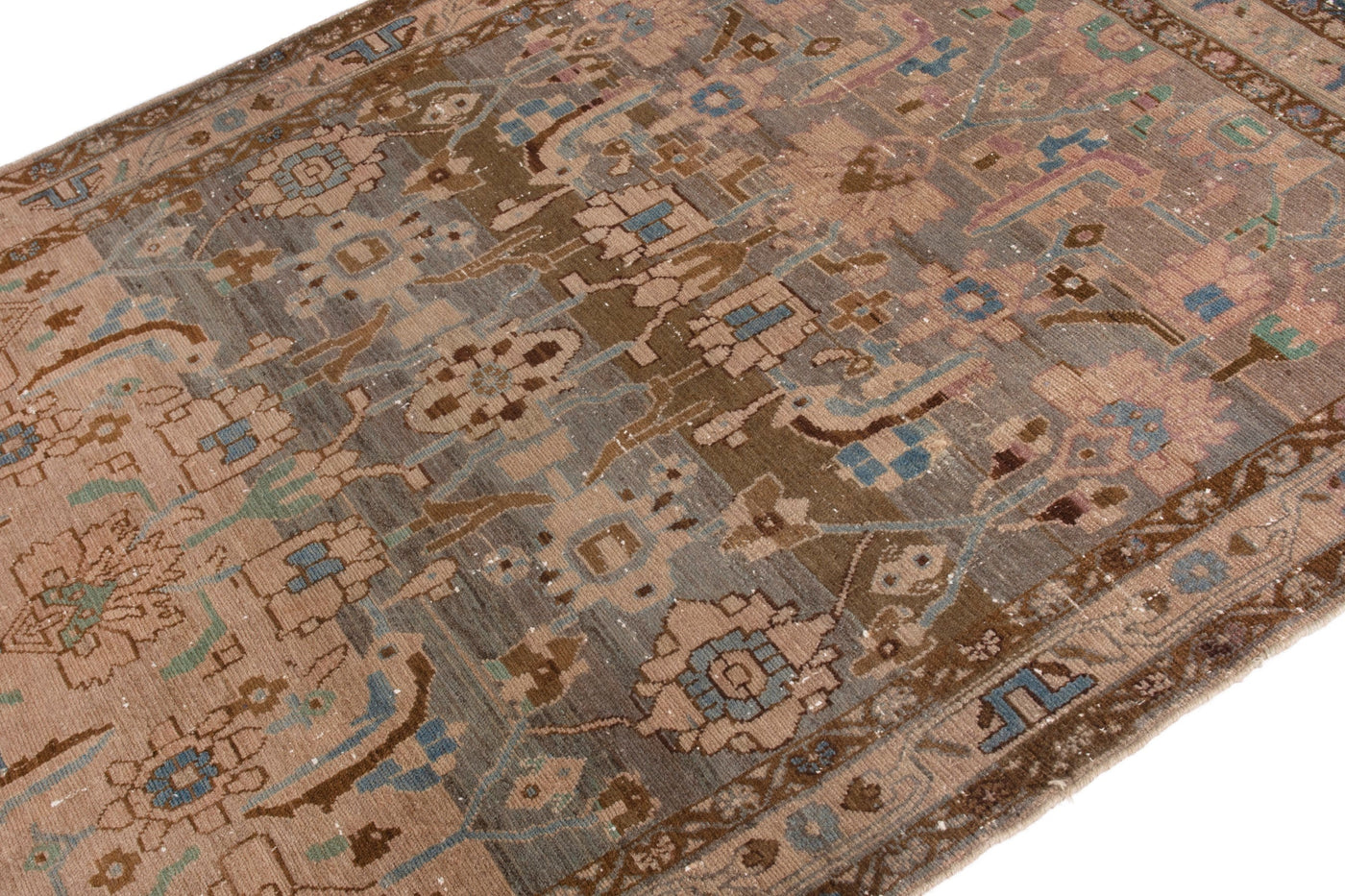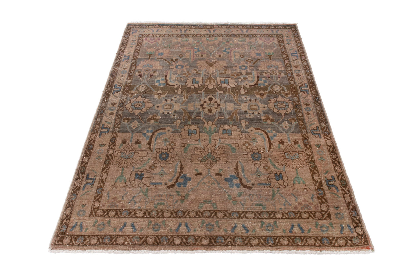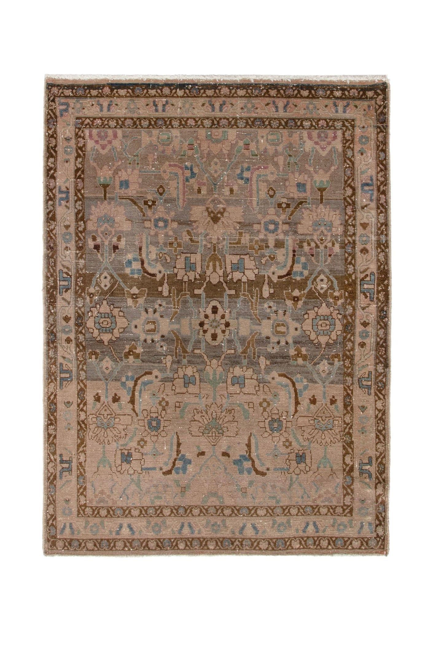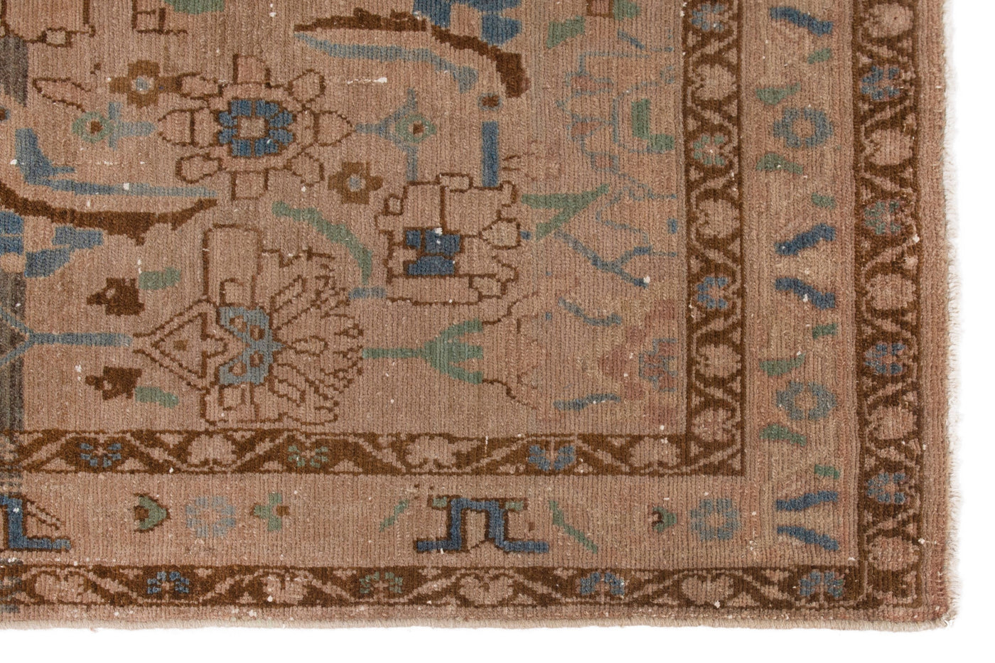 This one-of-a-kind, handmade vintage rug has been carefully restored, cleaned; age-related wear and natural imperfections are present.