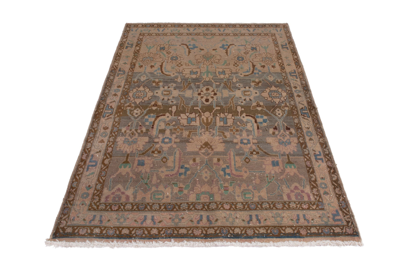 4'9" x 6'11" Handmade Vintage Neutral Medium Rug