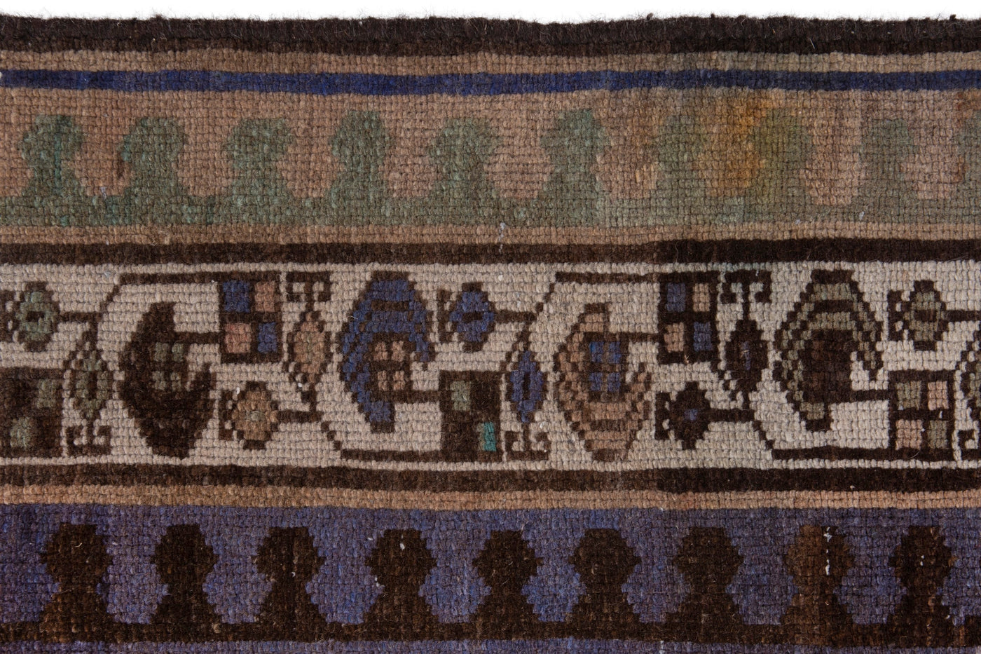 This one-of-a-kind, handmade vintage rug has been carefully restored, cleaned; age-related wear and natural imperfections are present.