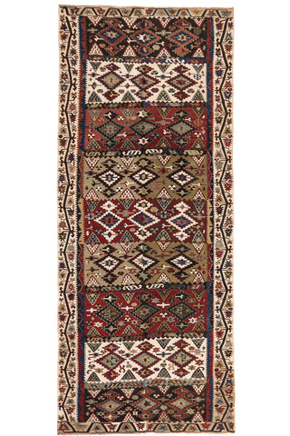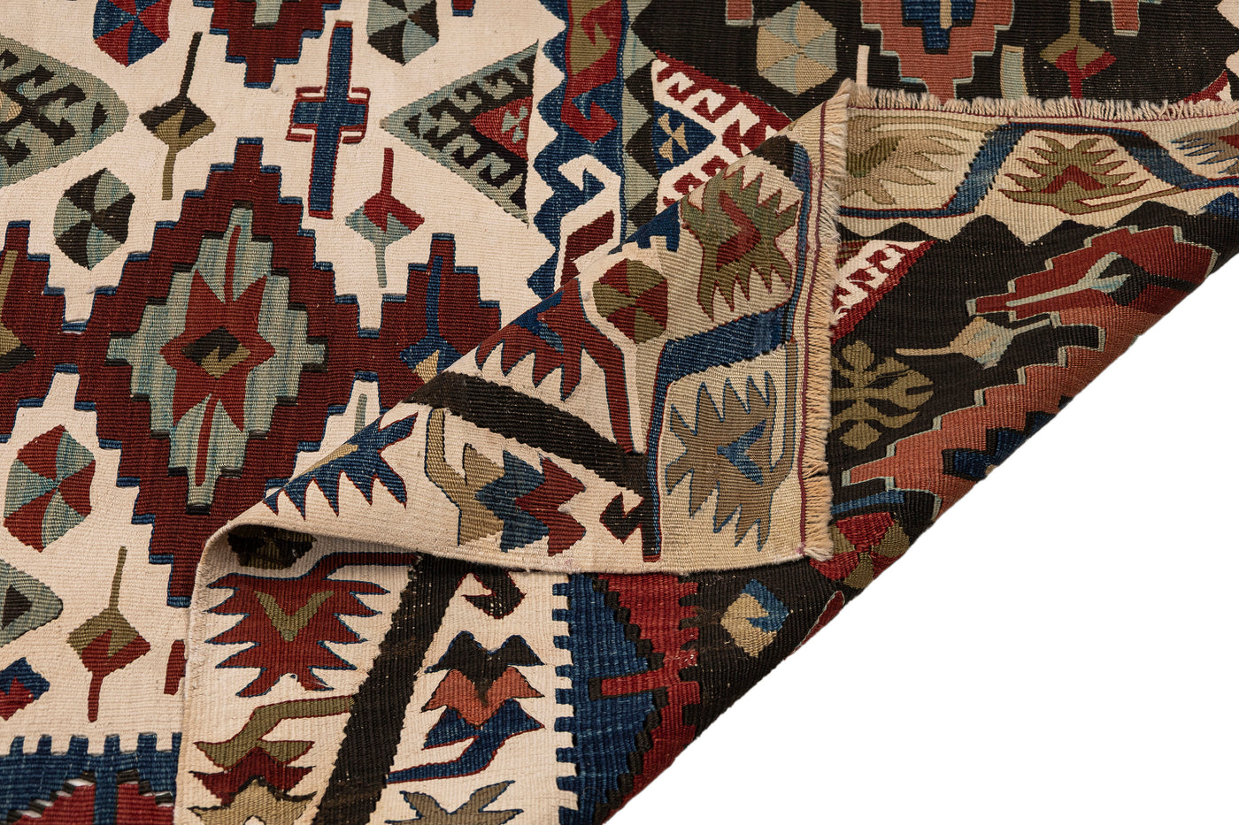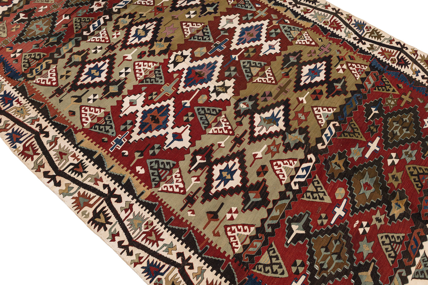• Turkish vintage kilims were made 100% wool on cotton or wool foundation by female artisans in Anatolian villages in the early and mid-20th Century.