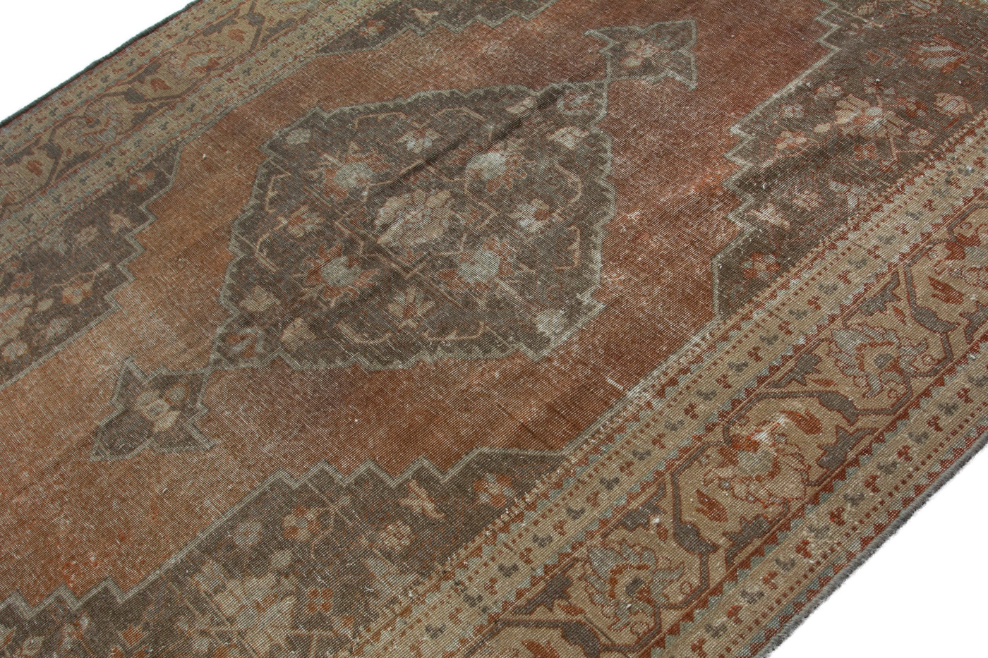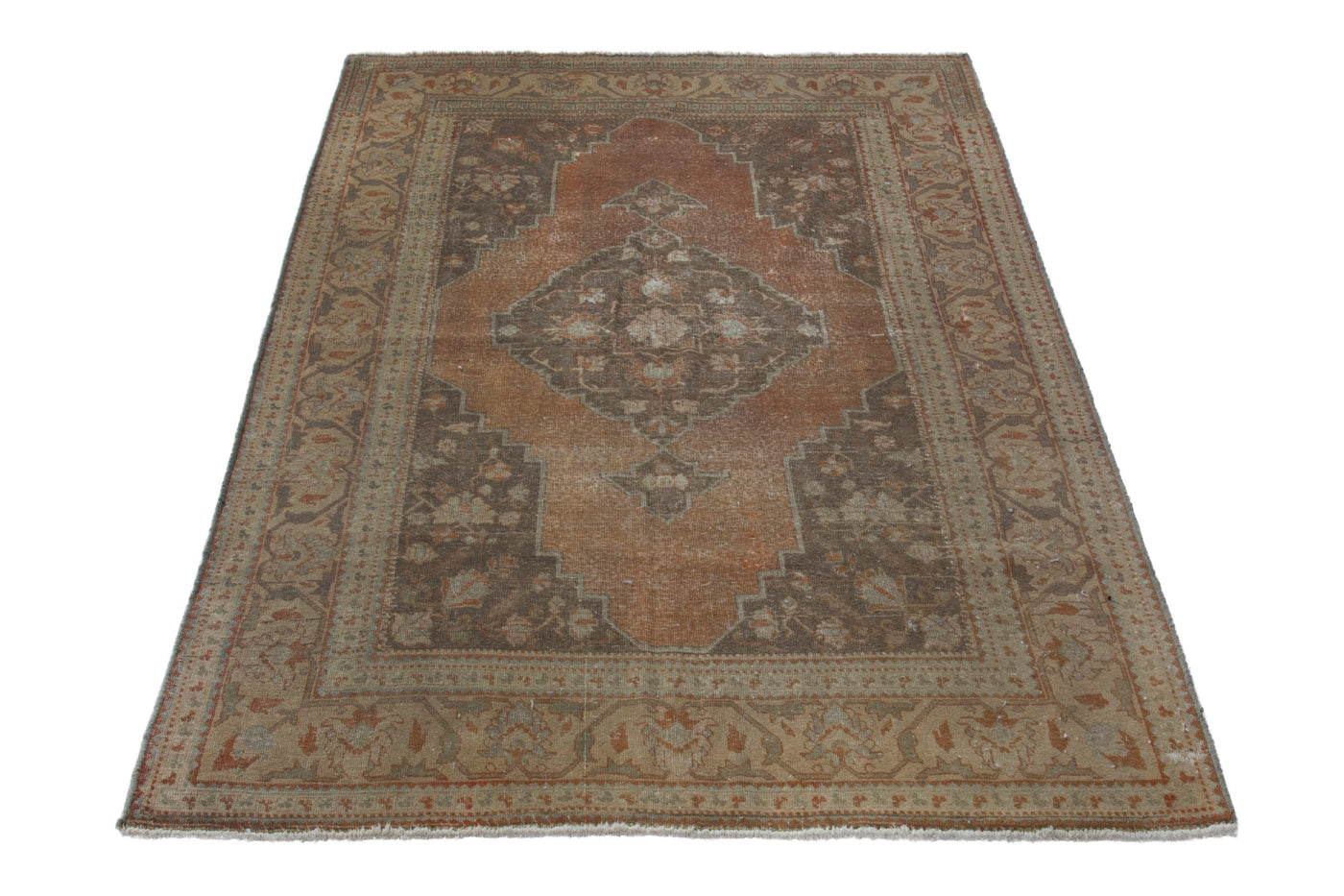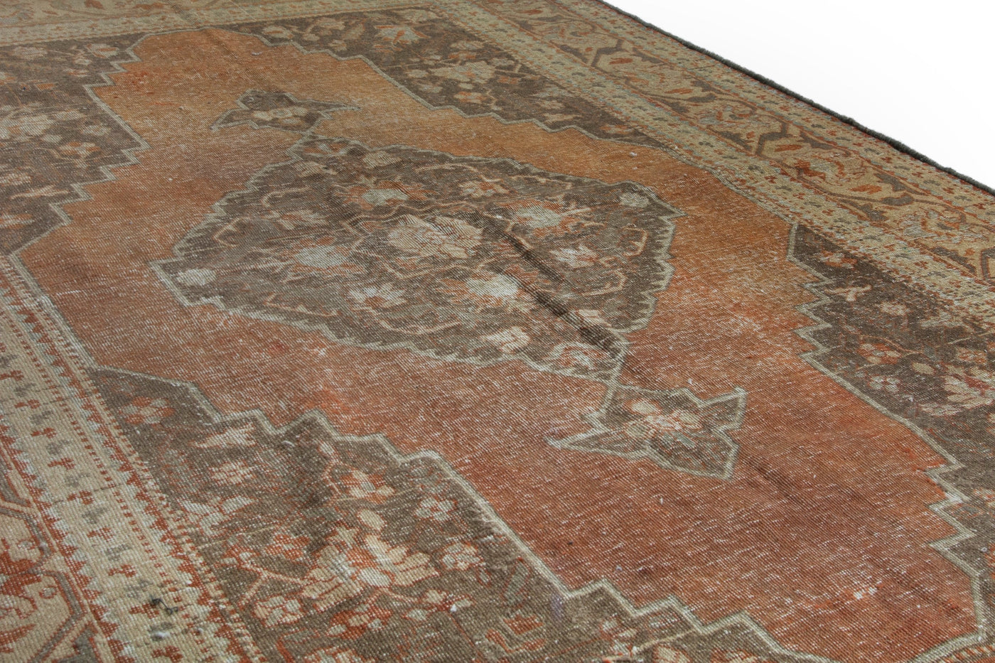 This one-of-a-kind, handmade vintage rug has been carefully restored, cleaned; age-related wear and natural imperfections are present.