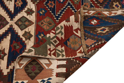 • Turkish vintage kilims were made 100% wool on cotton or wool foundation by female artisans in Anatolian villages in the early and mid-20th Century.