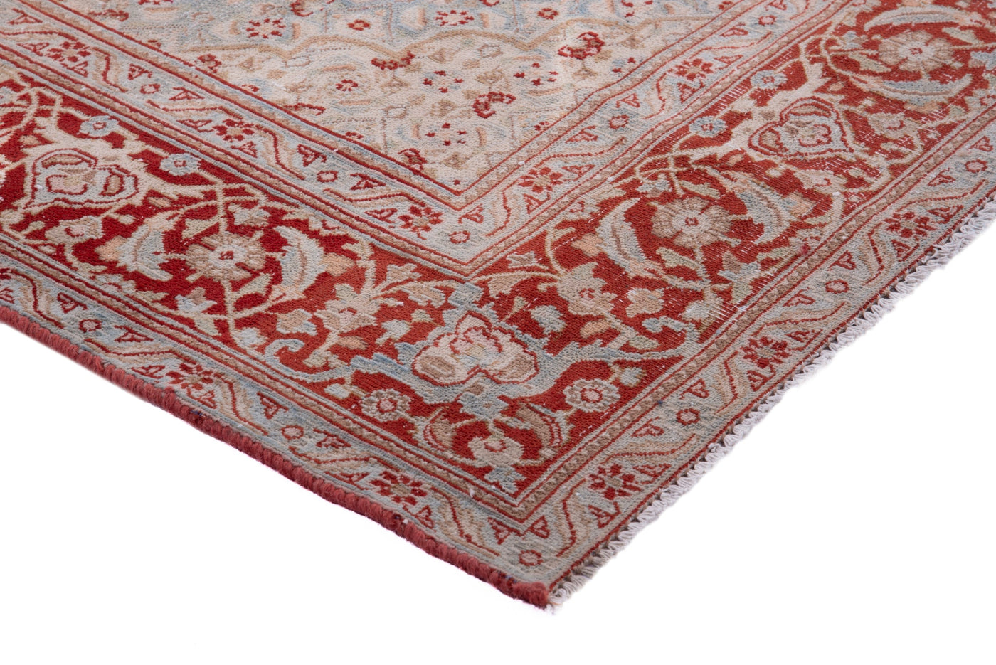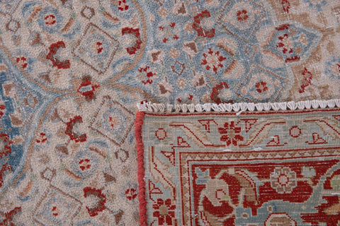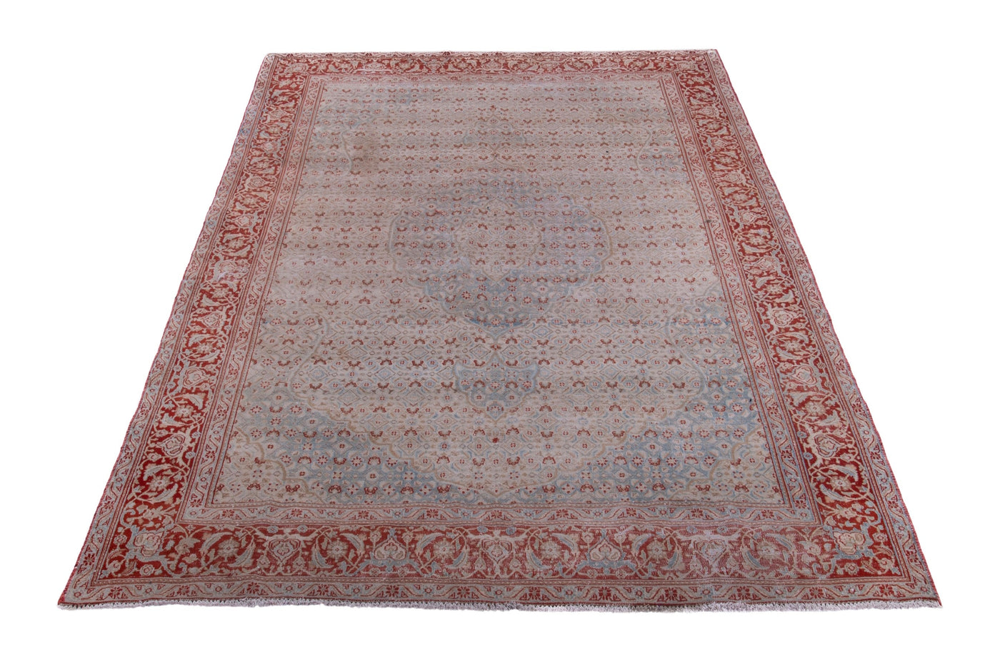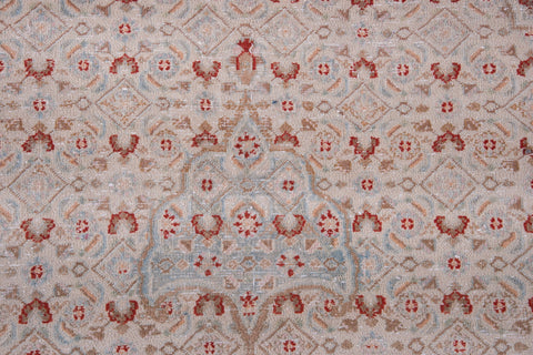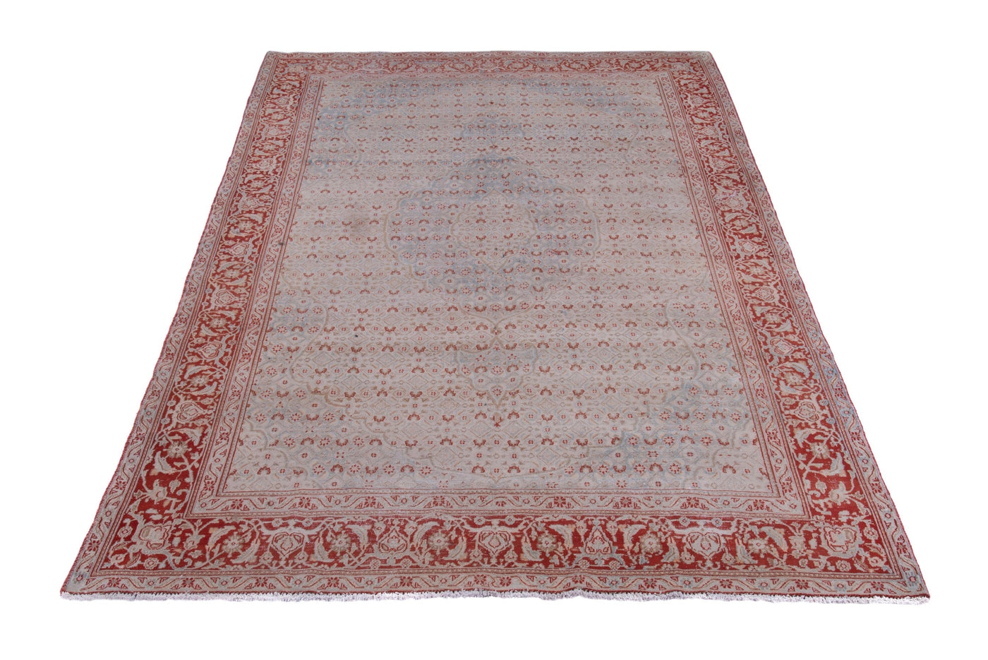6'5" x 8'10" Vintage Beige Blue Red Large Area Rug