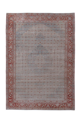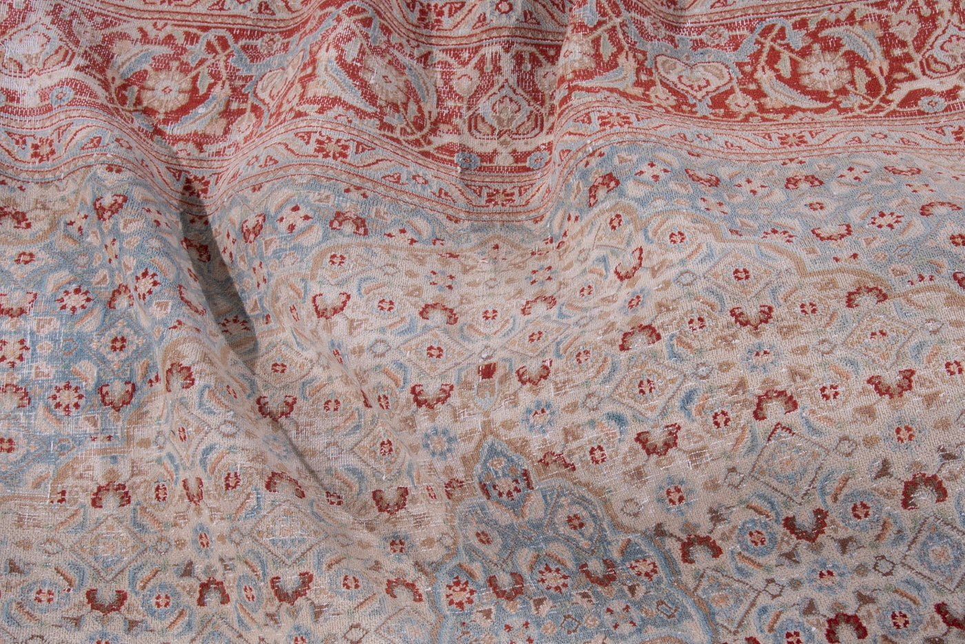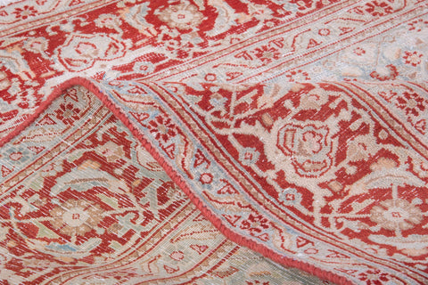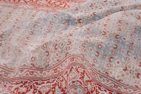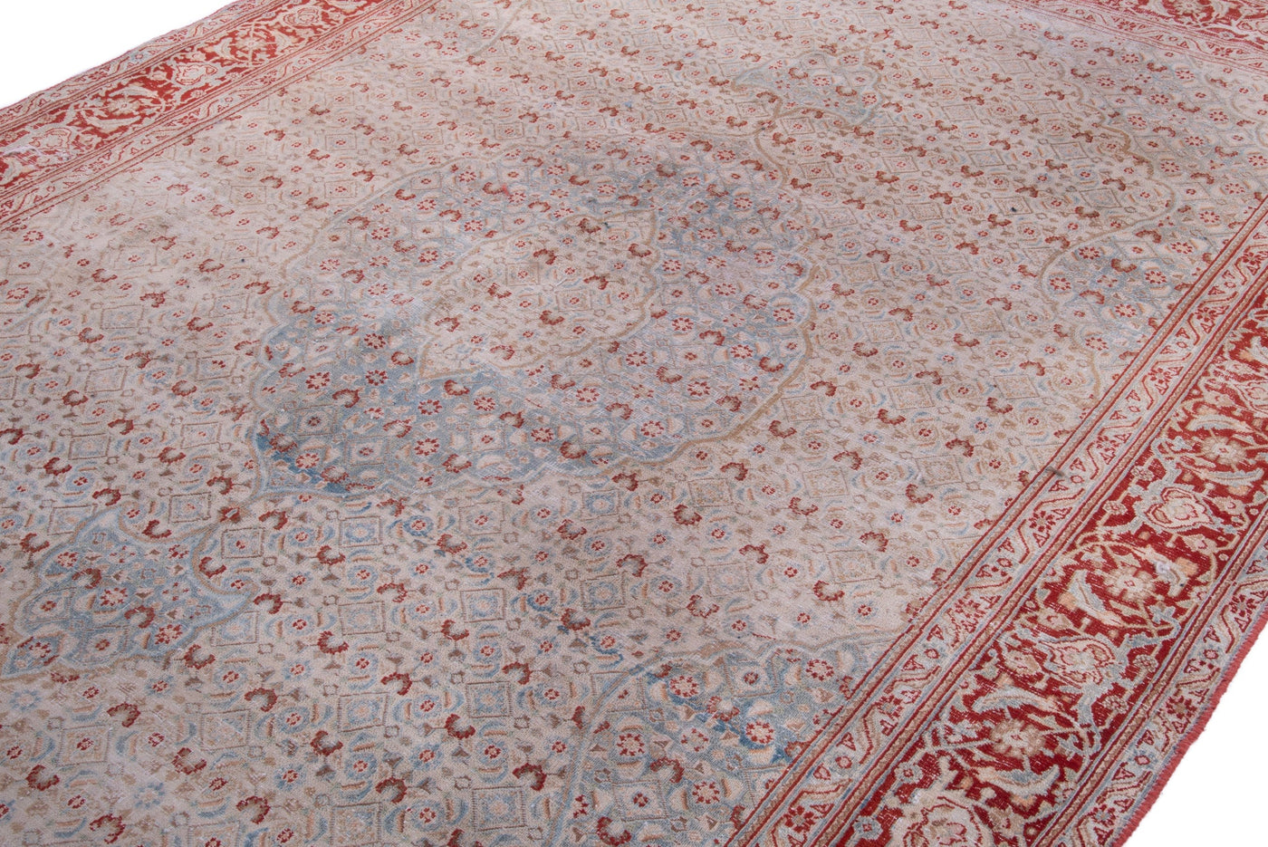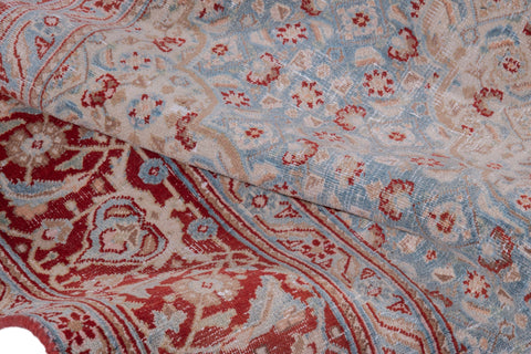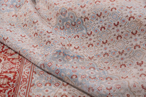 6'5" x 8'10" Vintage Beige Blue Red Large Area Rug