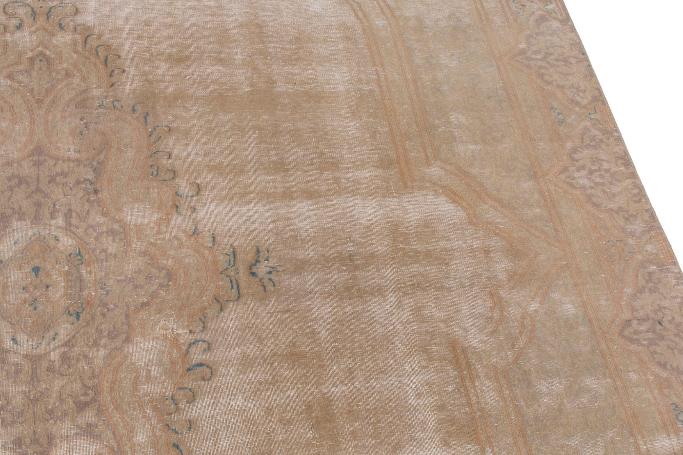 This one-of-a-kind, handmade vintage rug has been carefully restored, cleaned; age-related wear and natural imperfections are present.