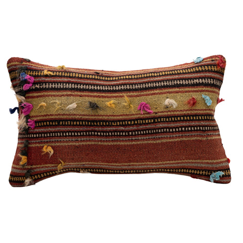 One-of-a-Kind Boho Kilim Pillow, 12x20" Handwoven Lumbar Pillow Cover - Bohemian Home Decor