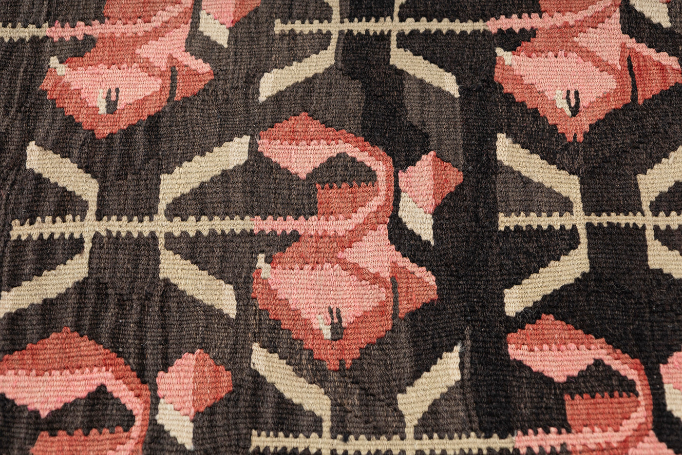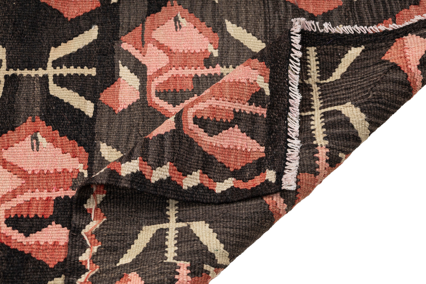 This one-of-a-kind vintage Turkish Kilim was made by hand in Kars -Anatolian villages in the mid-20th century.