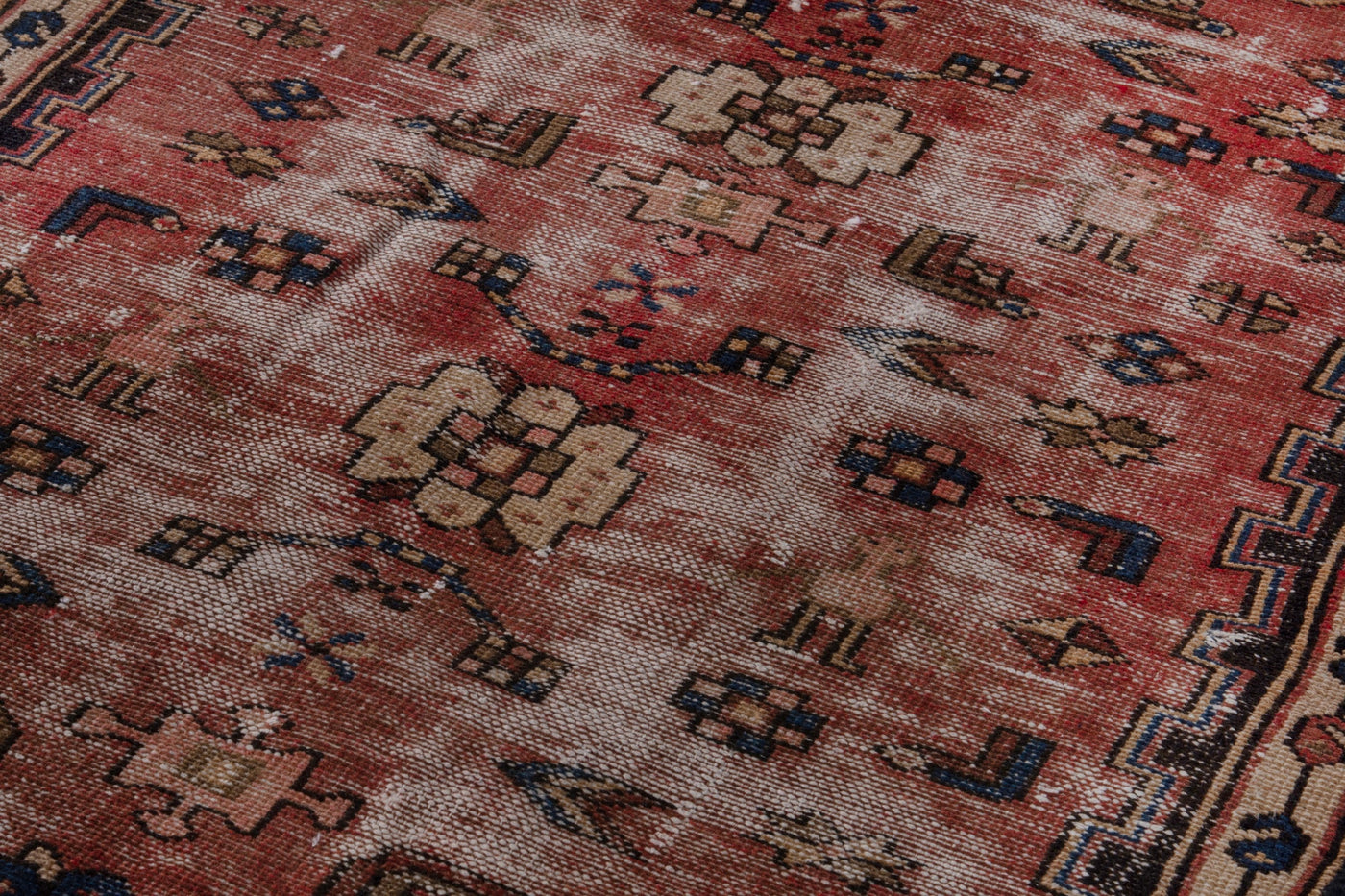 This one-of-a-kind, handmade vintage rug has been carefully restored, cleaned; age-related wear and natural imperfections are present.
