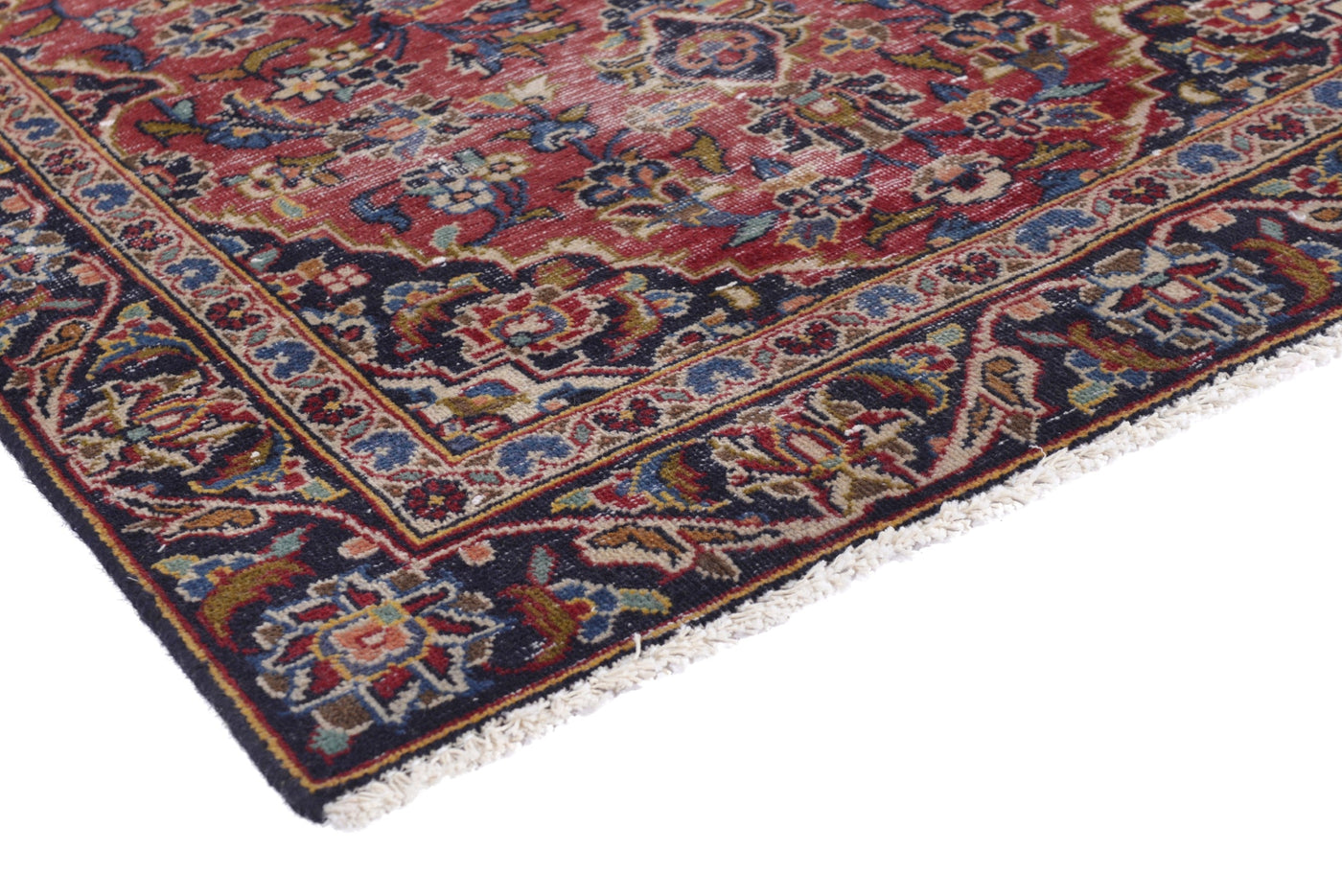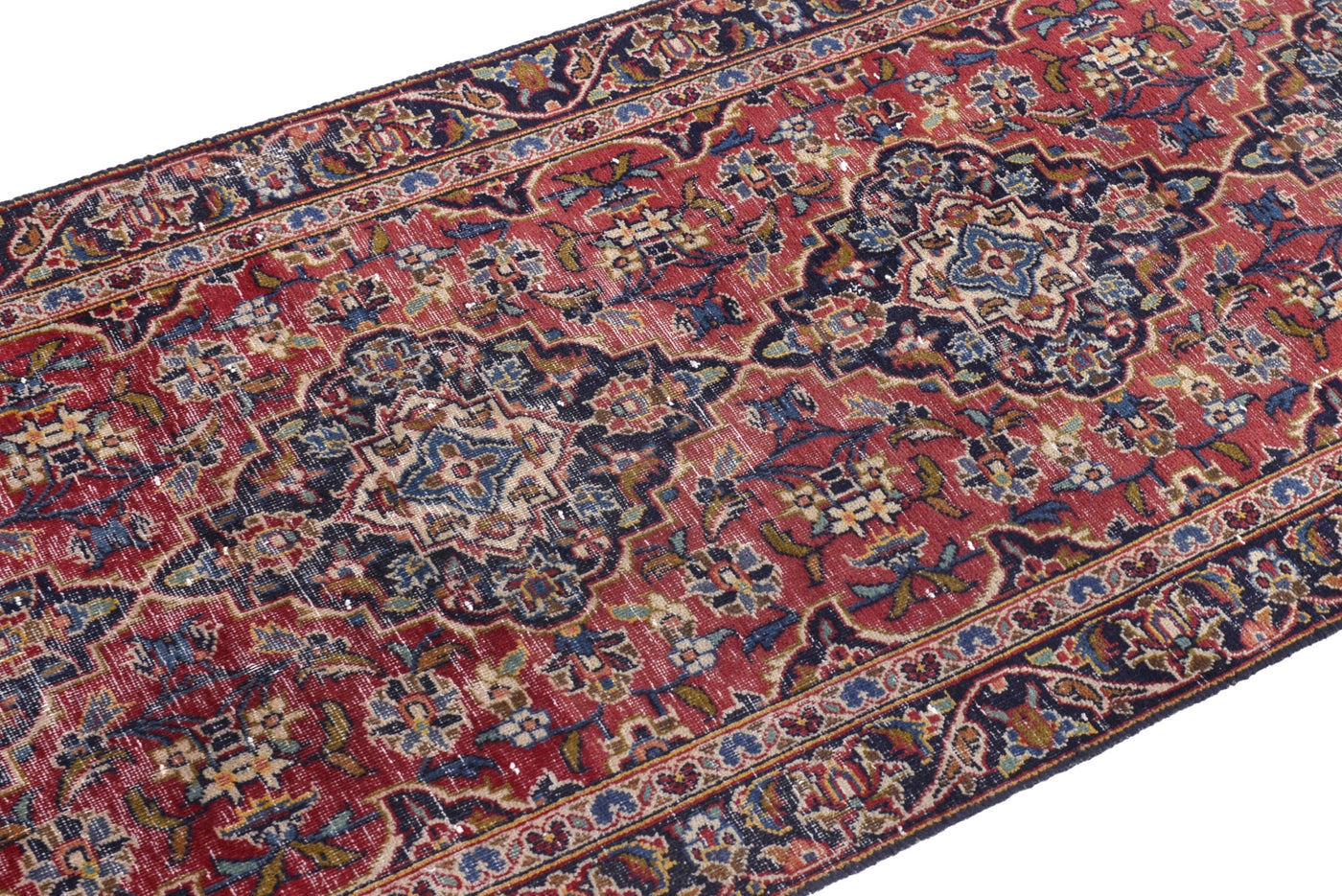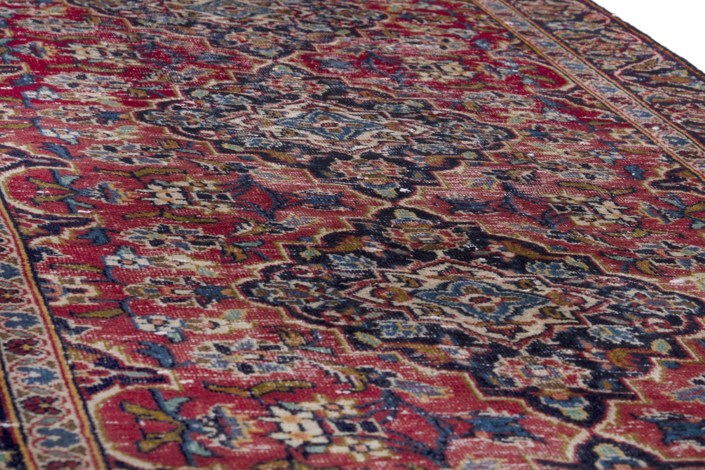 This one-of-a-kind, handmade vintage rug has been carefully restored, cleaned; age-related wear and natural imperfections are present.