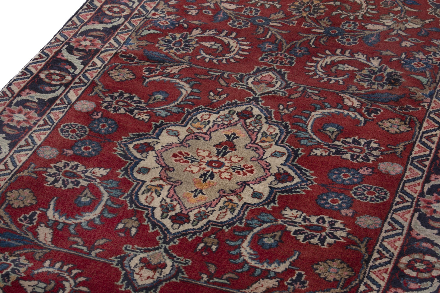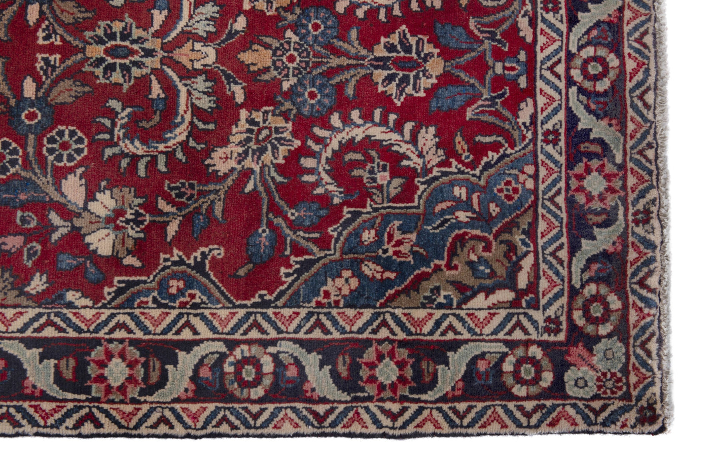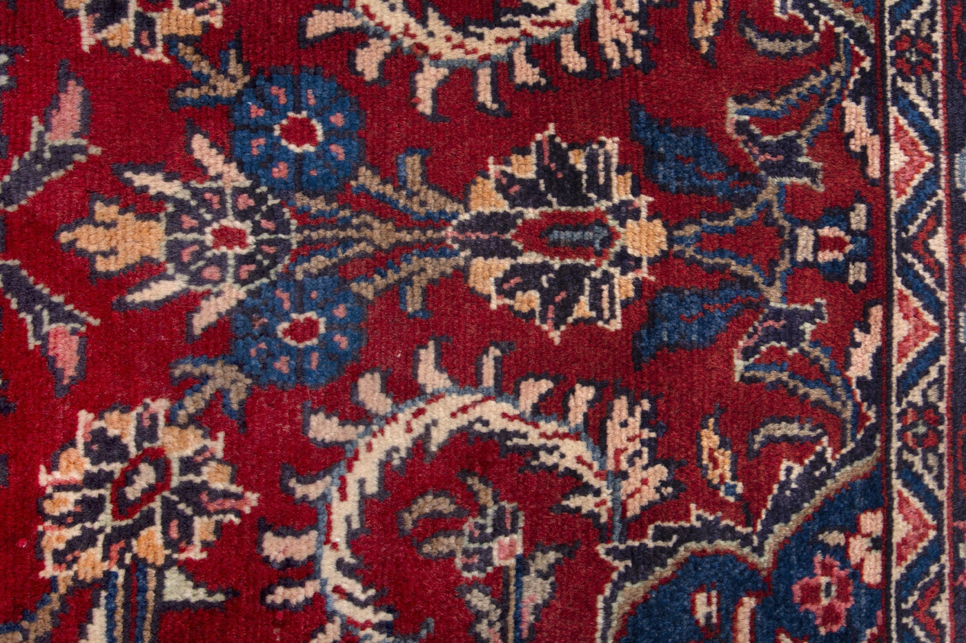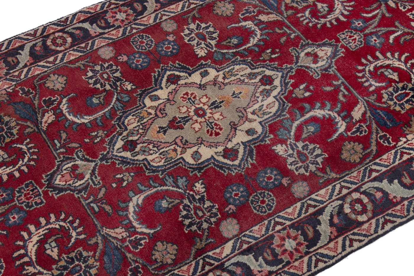 This one-of-a-kind, handmade vintage rug has been carefully restored, cleaned; age-related wear and natural imperfections are present.