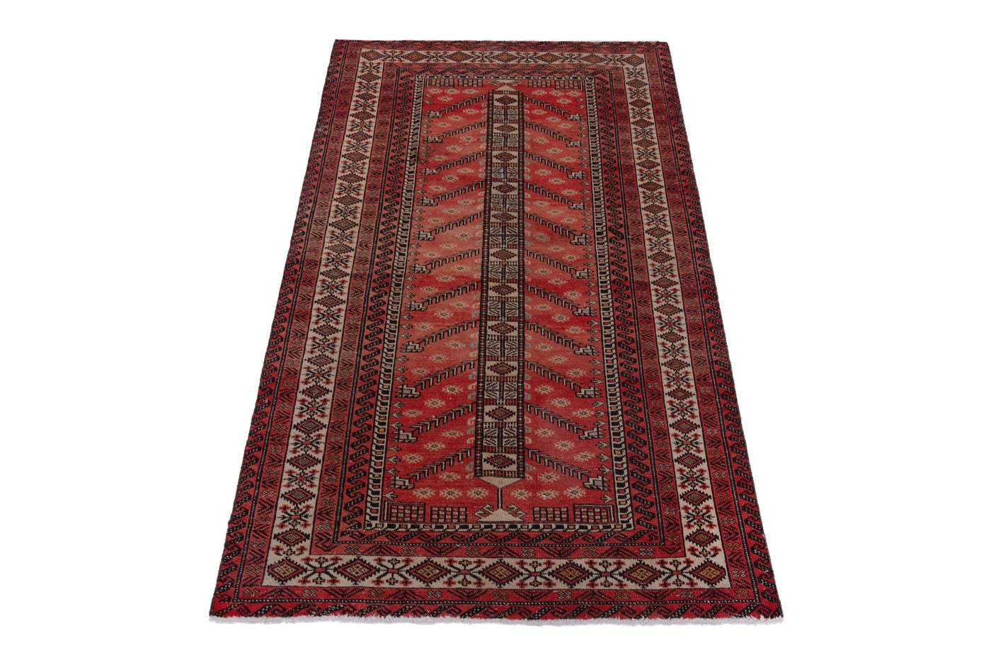 3'10" x 6'10" Vintage Turkish Scatter Red Rug