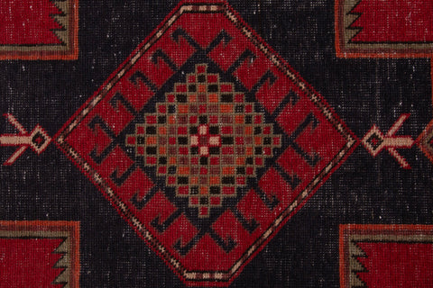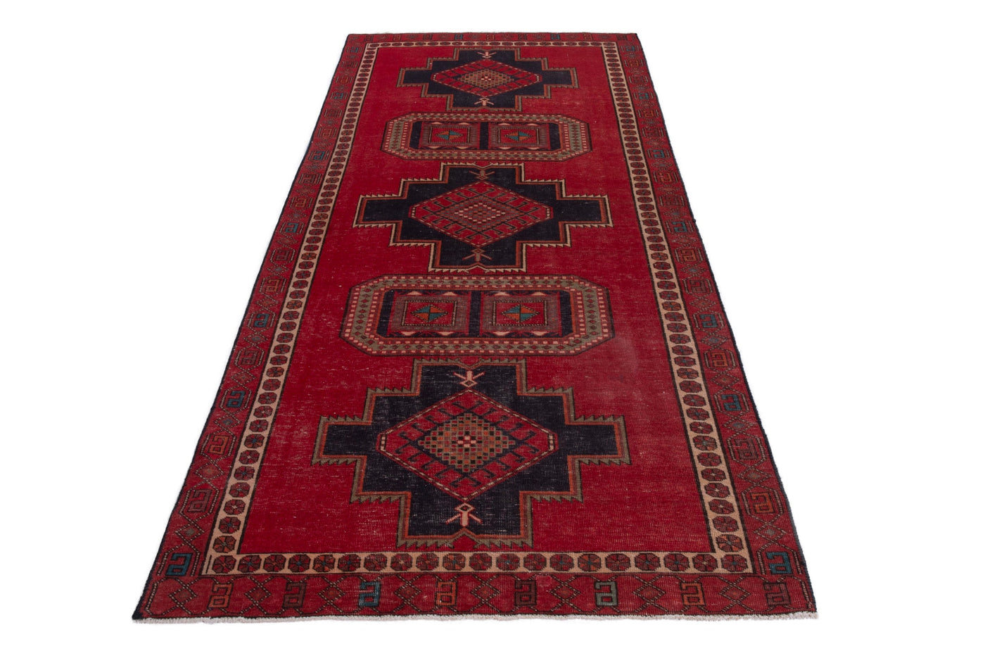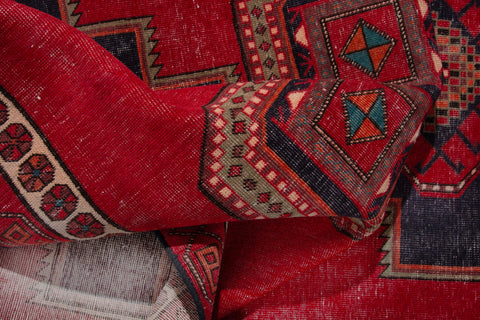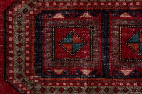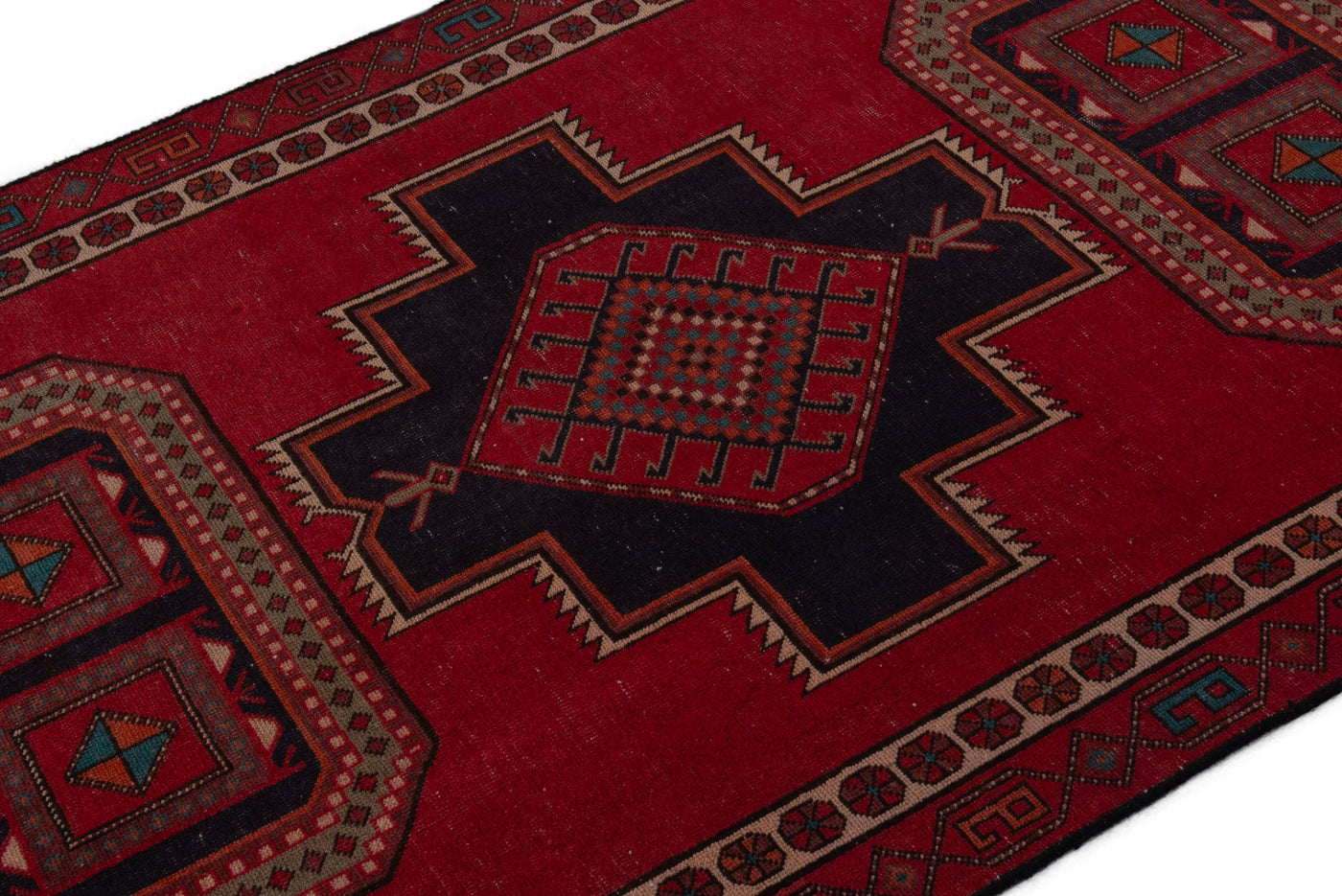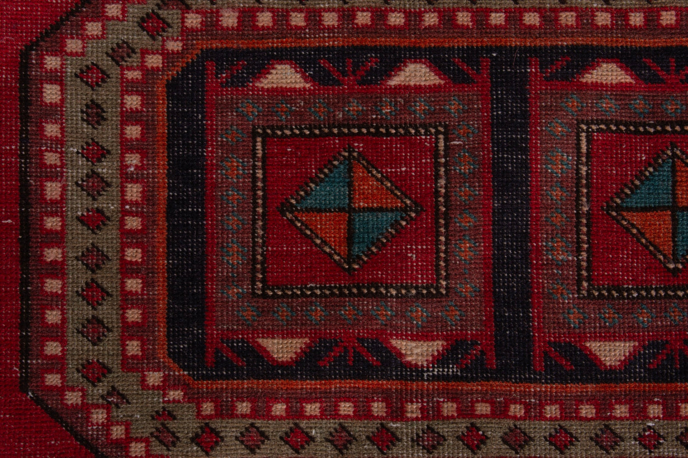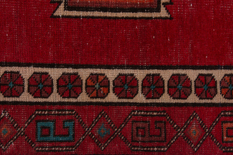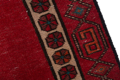 3'11" x 10'5" Geometric Vintage Red Runner Rug