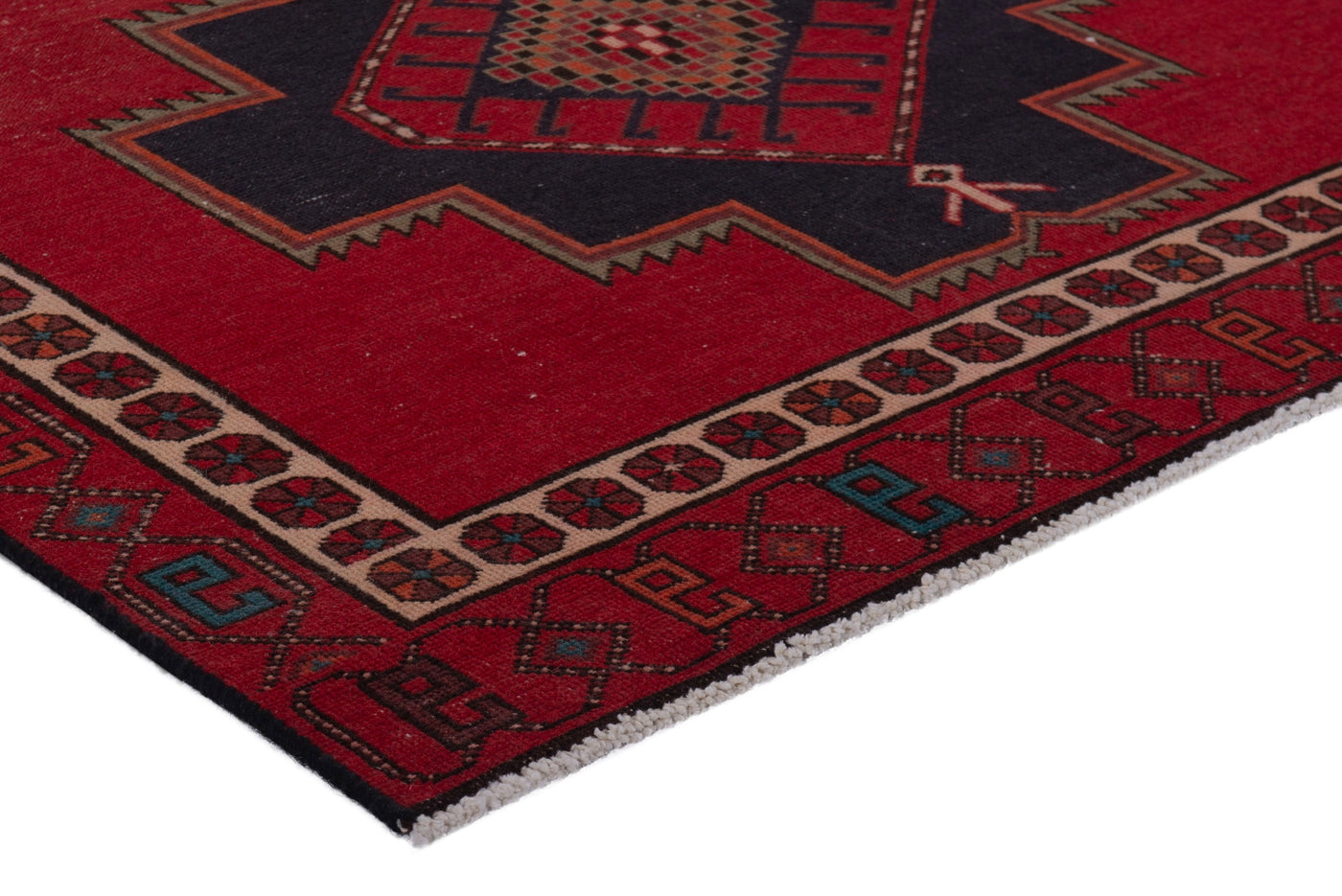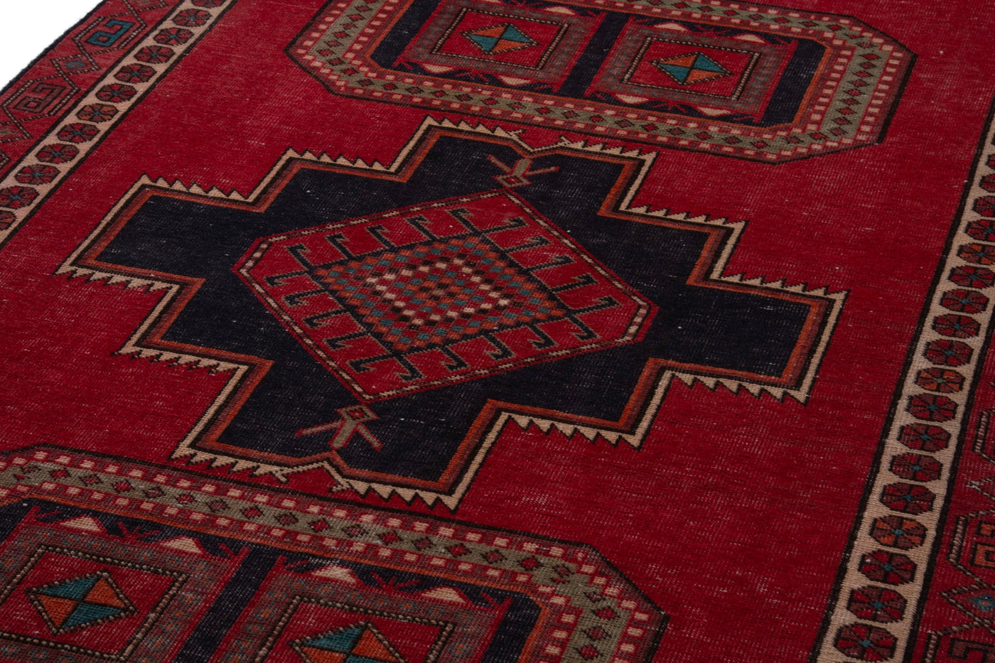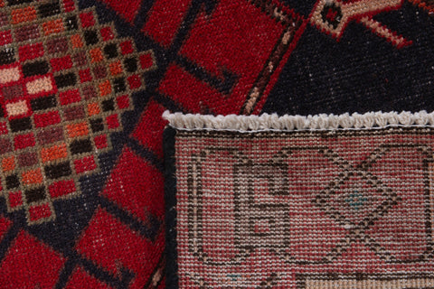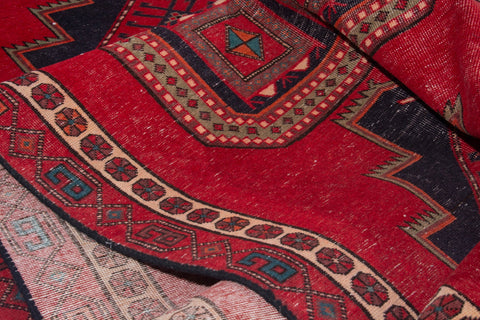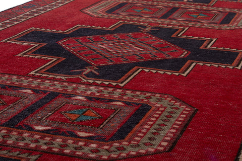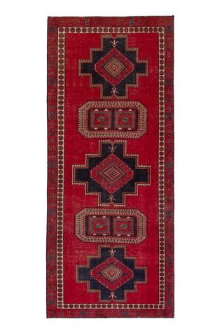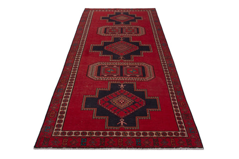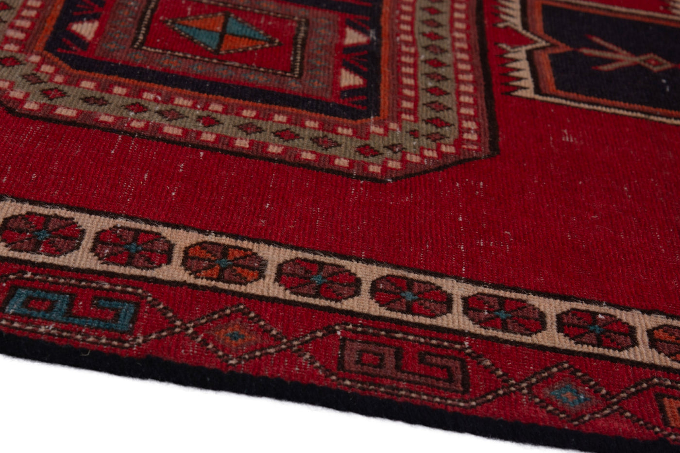 3'11" x 10'5" Geometric Vintage Red Runner Rug