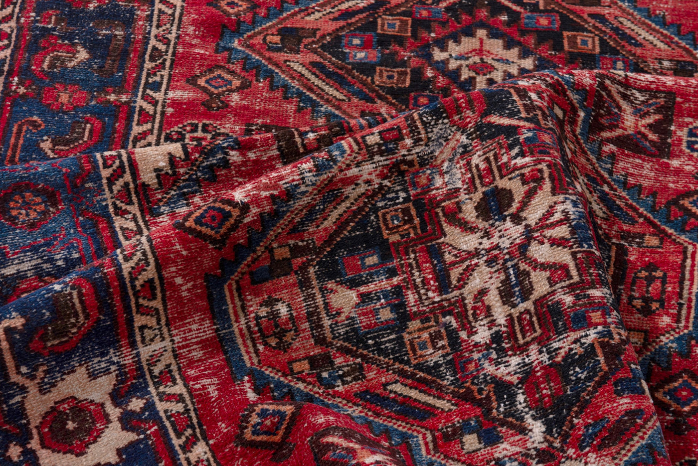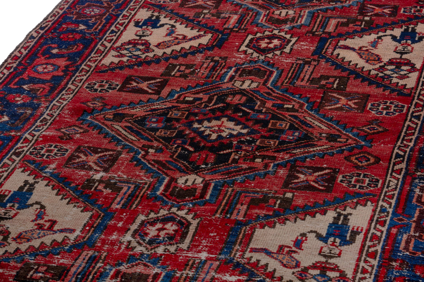 This one-of-a-kind, handmade vintage rug has been carefully restored, cleaned; age-related wear and natural imperfections are present.