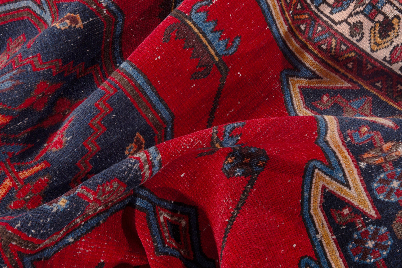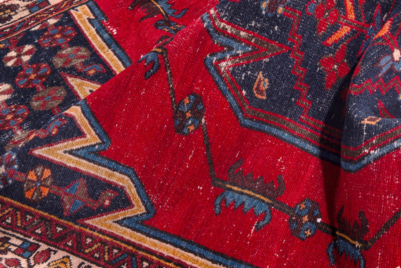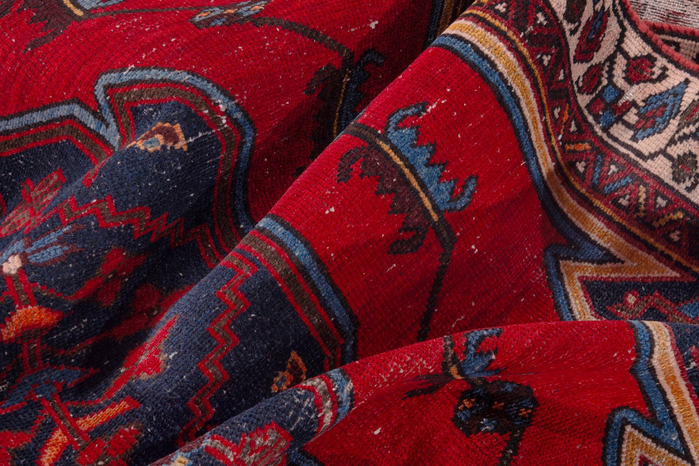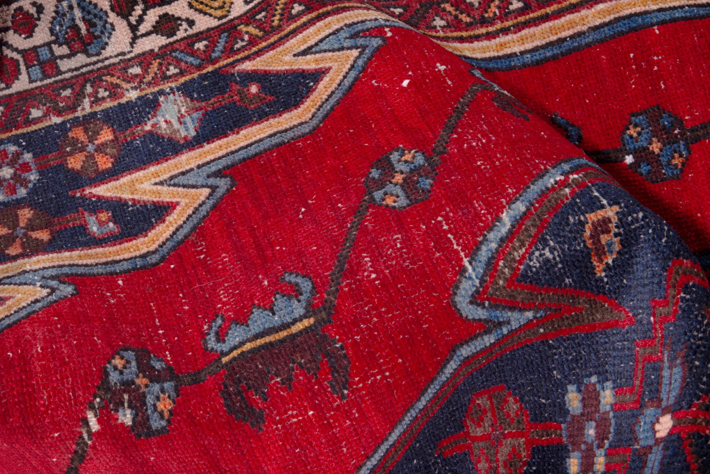 This one-of-a-kind, handmade vintage rug has been carefully restored, cleaned; age-related wear and natural imperfections are present.