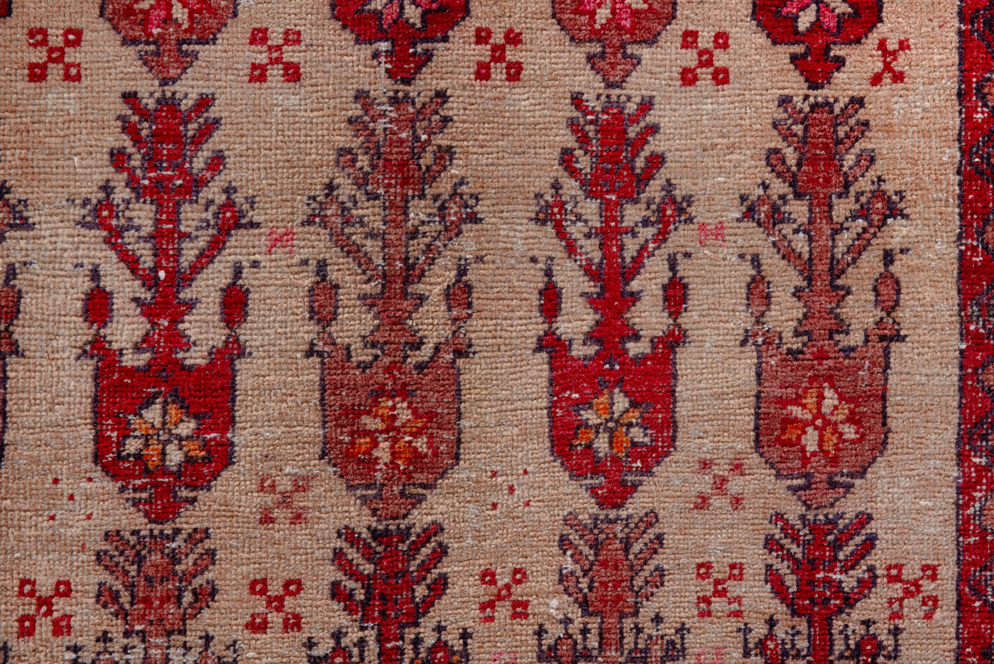 Turkish vintage rugs were made 100% wool on cotton foundation by female artisans in Anatolian villages in the early and mid-20th Century.