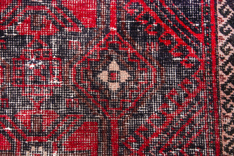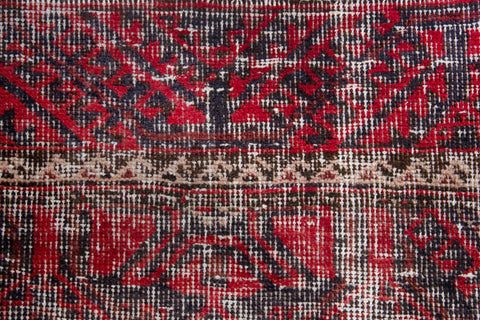 3'3" x 6'10" Handmade Vintage Red Runner Rug