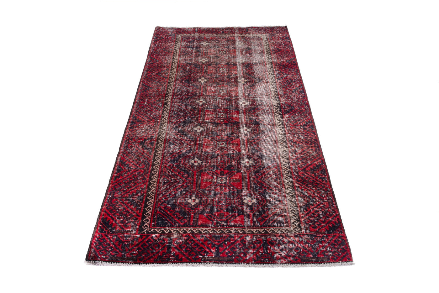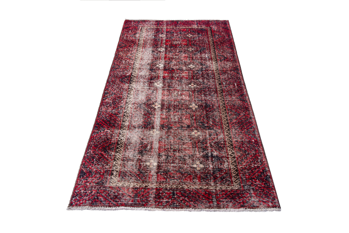 3'3" x 6'10" Handmade Vintage Red Runner Rug Sale