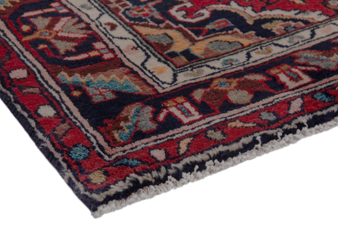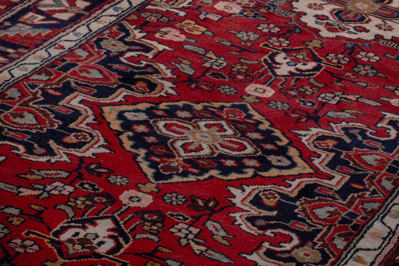 This one-of-a-kind, handmade vintage rug has been carefully restored, cleaned; age-related wear and natural imperfections are present.