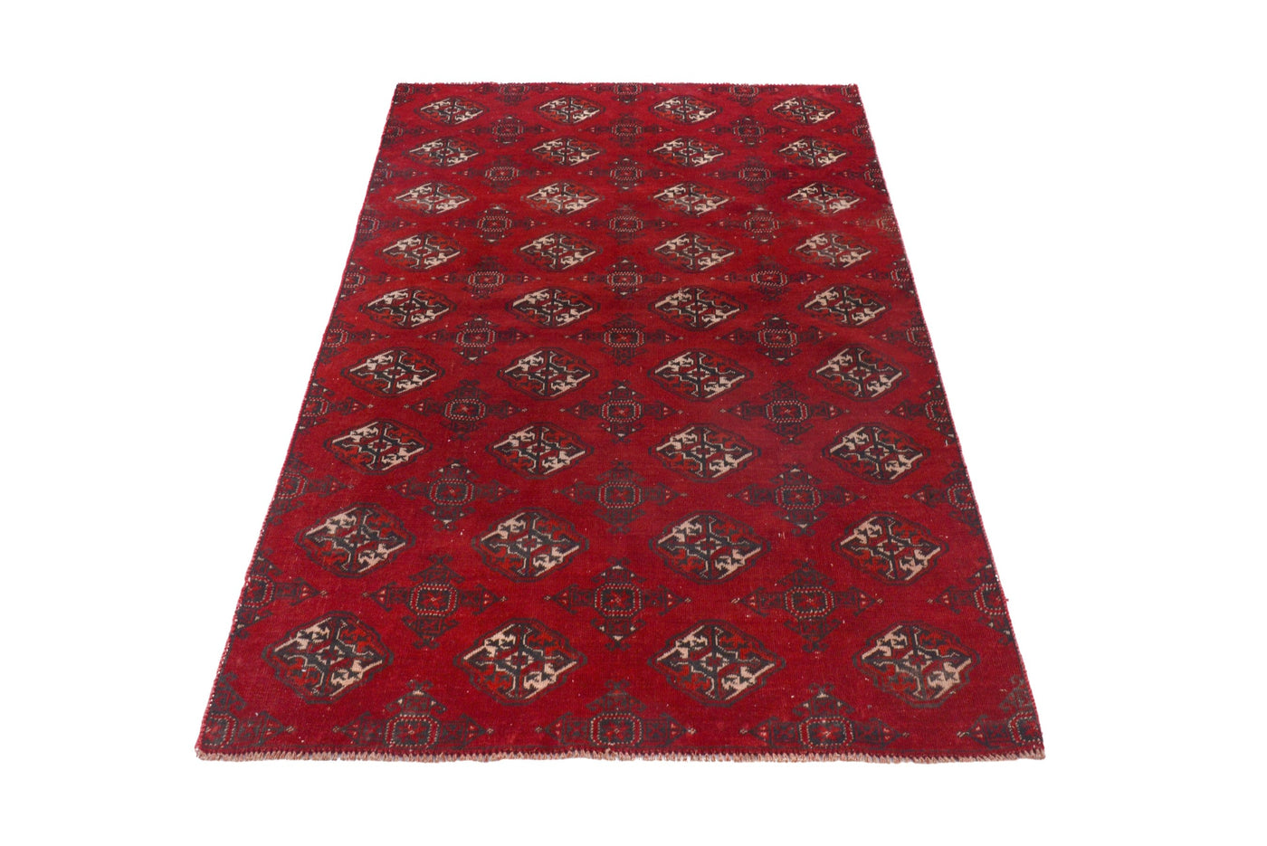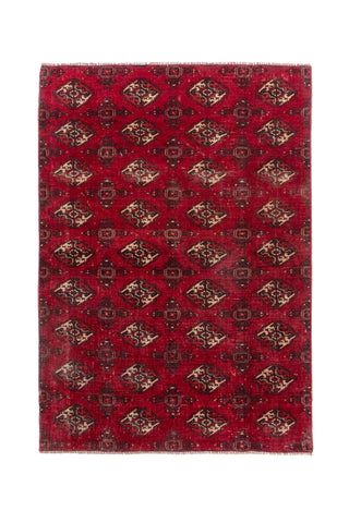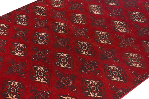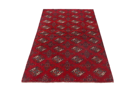 4'4" x 6'1" Handmade Vintage Turkoman Red Area Rug