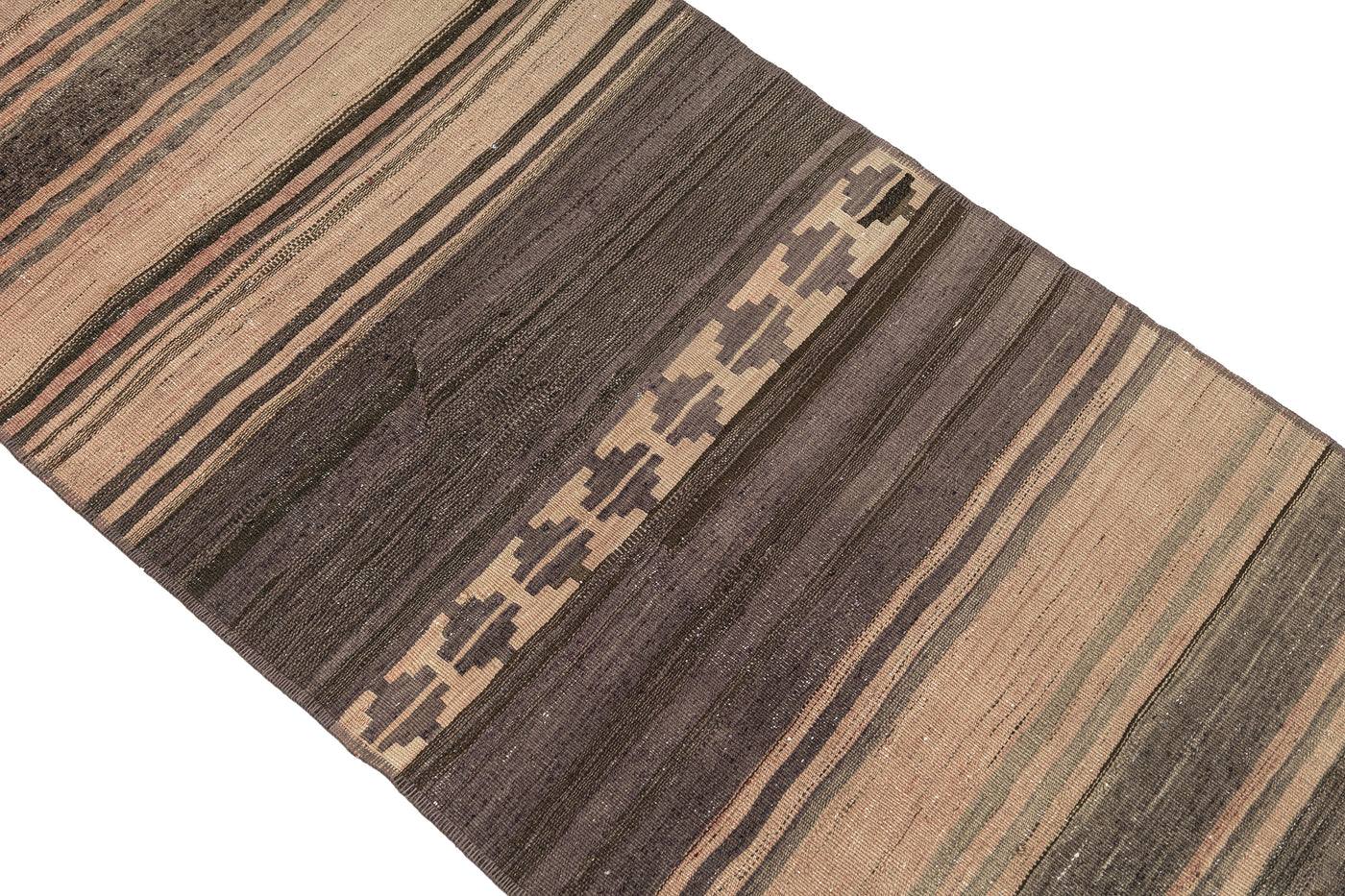Turkish vintage kilims were made 100% wool on cotton or wool foundation by female artisans in Anatolian villages in the early and mid-20th Century.