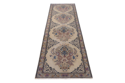 2'7" x 9'4" Neutral Vintage Turkish Runner Rug