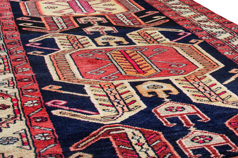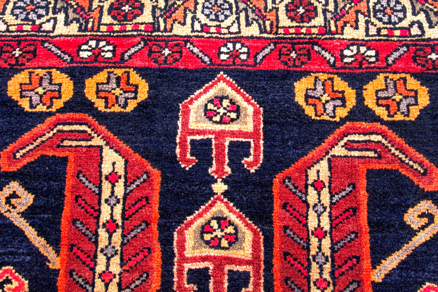 This one-of-a-kind, handmade vintage rug has been carefully restored, cleaned; age-related wear and natural imperfections are present.