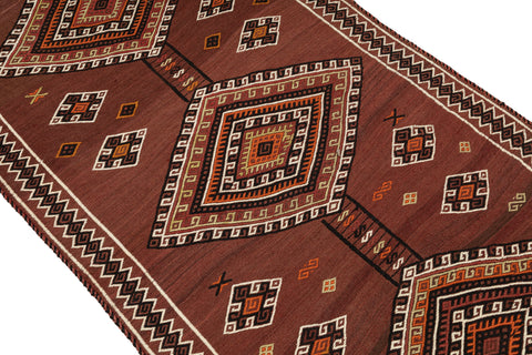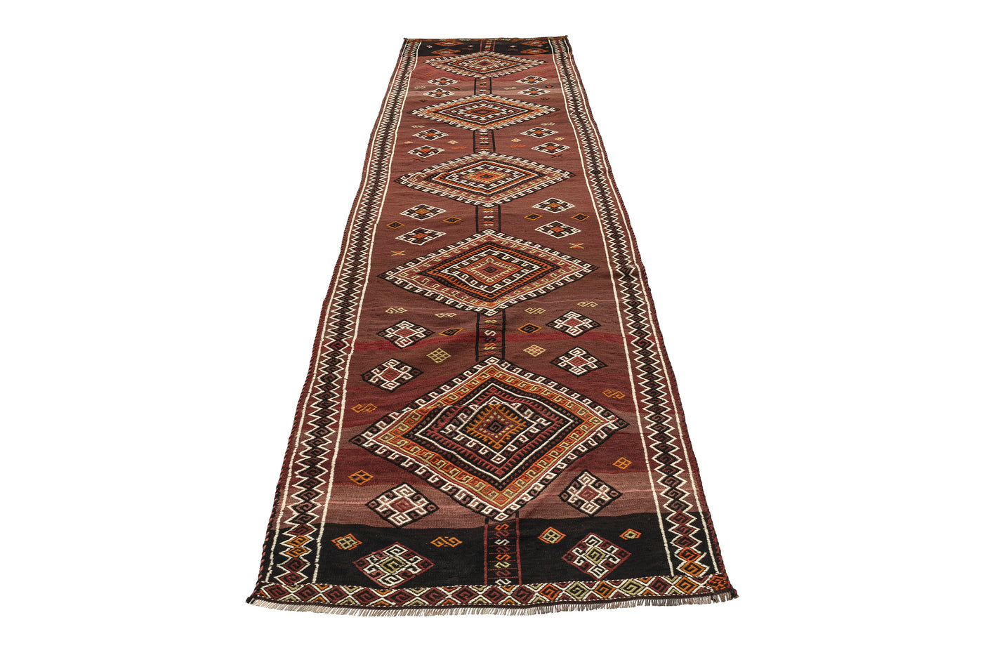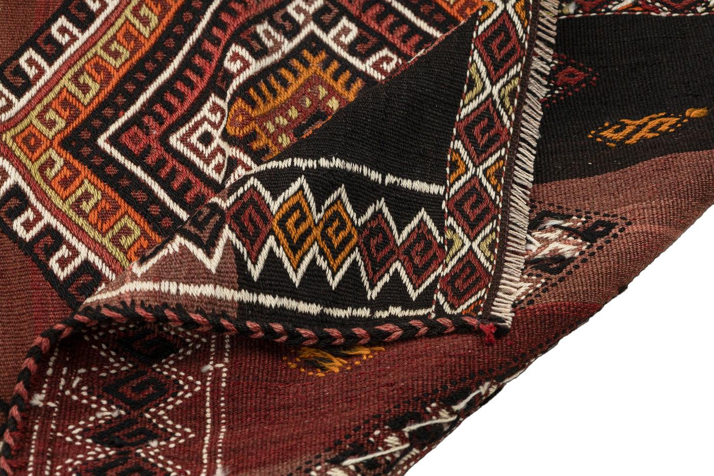 This one-of-a-kind vintage Turkish Kilim was made by hand in Diyarbakır -Anatolian villages in the mid-20th century.