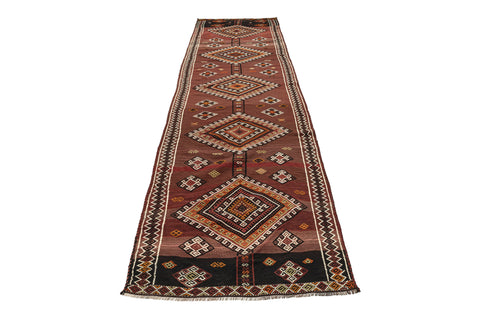 3'6'' x 12'3'' Vintage Handmade Turkish Kilim Runner Rug