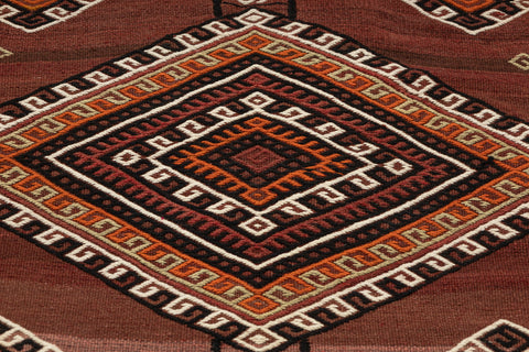 Turkish vintage kilims were made 100% wool on cotton or wool foundation by female artisans in Anatolian villages in the early and mid-20th Century.