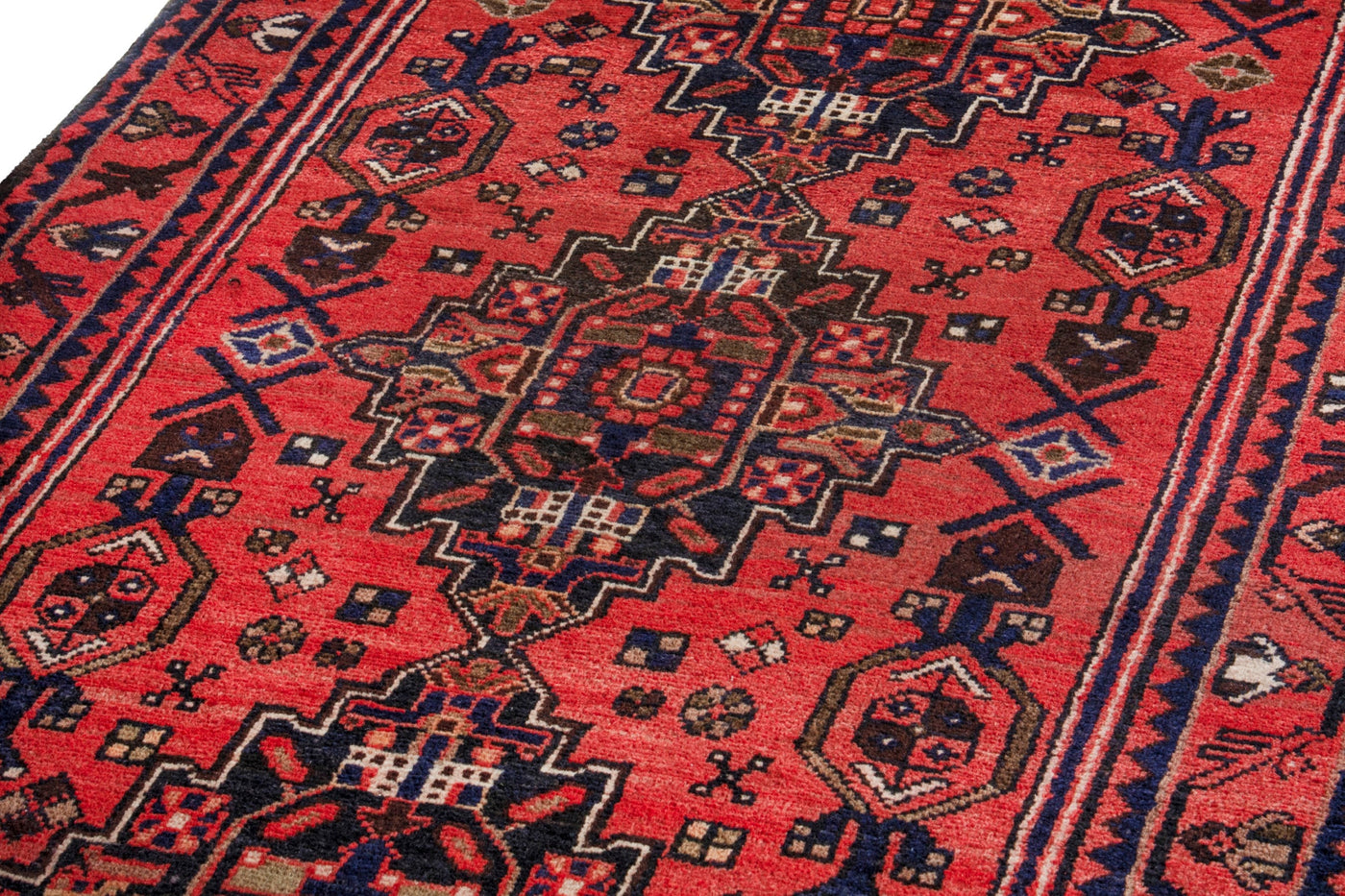 This one-of-a-kind, handmade vintage rug has been carefully restored, cleaned; age-related wear and natural imperfections are present.