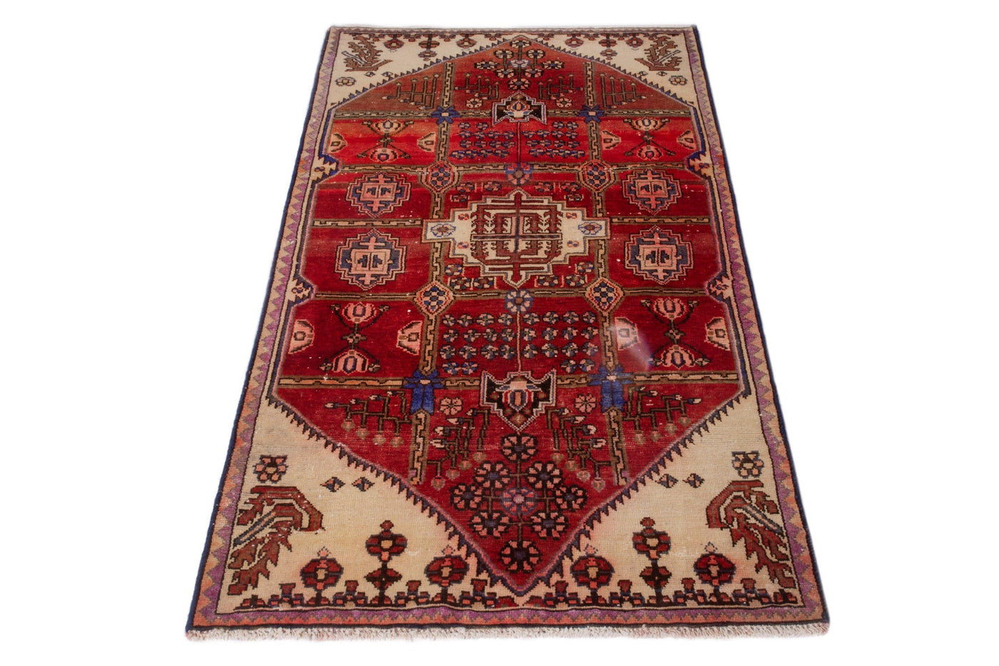 This one-of-a-kind, handmade vintage rug has been carefully restored, cleaned; age-related wear and natural imperfections are present.